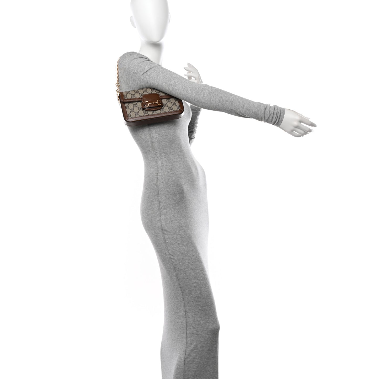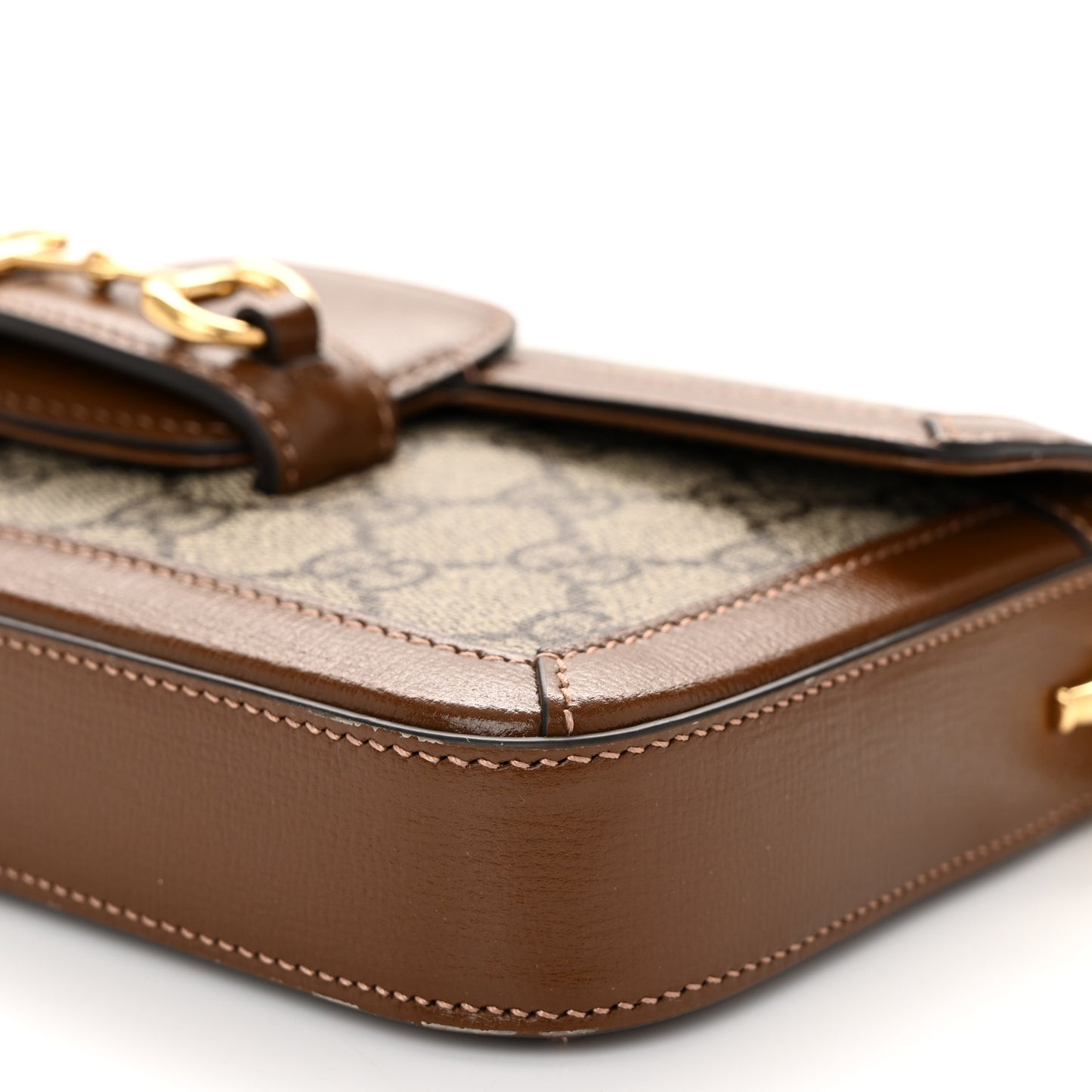 GG Supreme Monogram Azalea Calfskin Horsebit 1955 Mini Bag Beige Ebony Brown Sugar