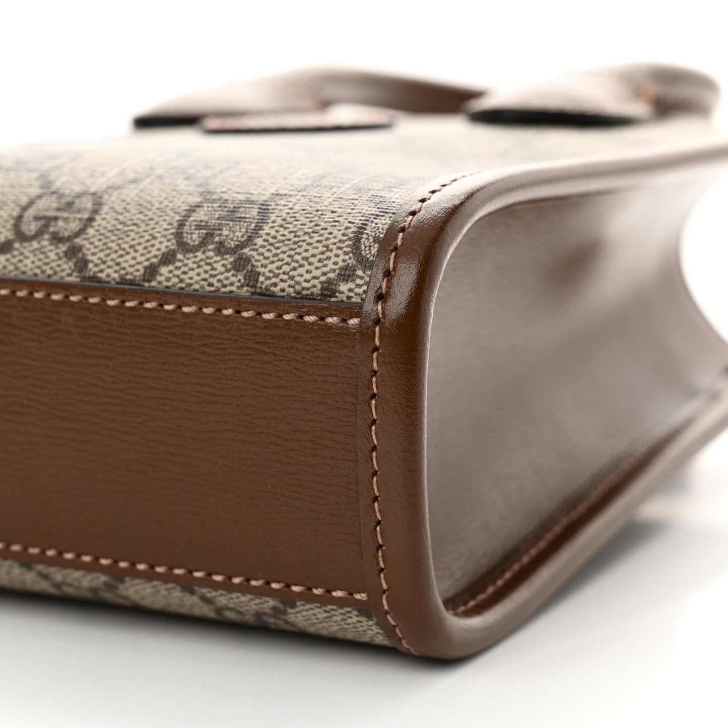 GG Supreme Monogram Azalea Calfskin Mini Retro Interlocking G Tote Bag Beige Ebony Brown Sugar