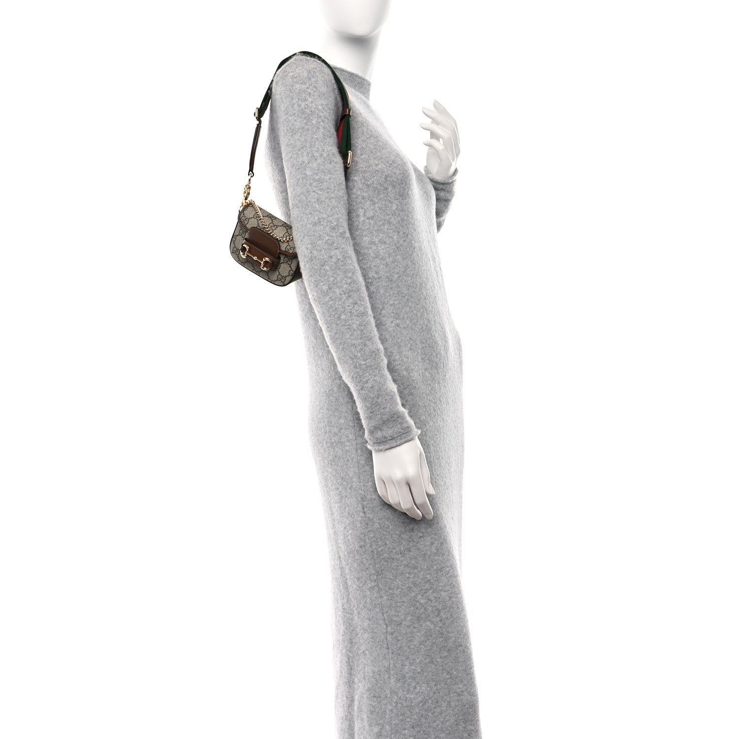 GG Supreme Monogram Azalea Calfskin Web Horsebit 1955 Wallet On Strap Beige Ebony Brown Sugar