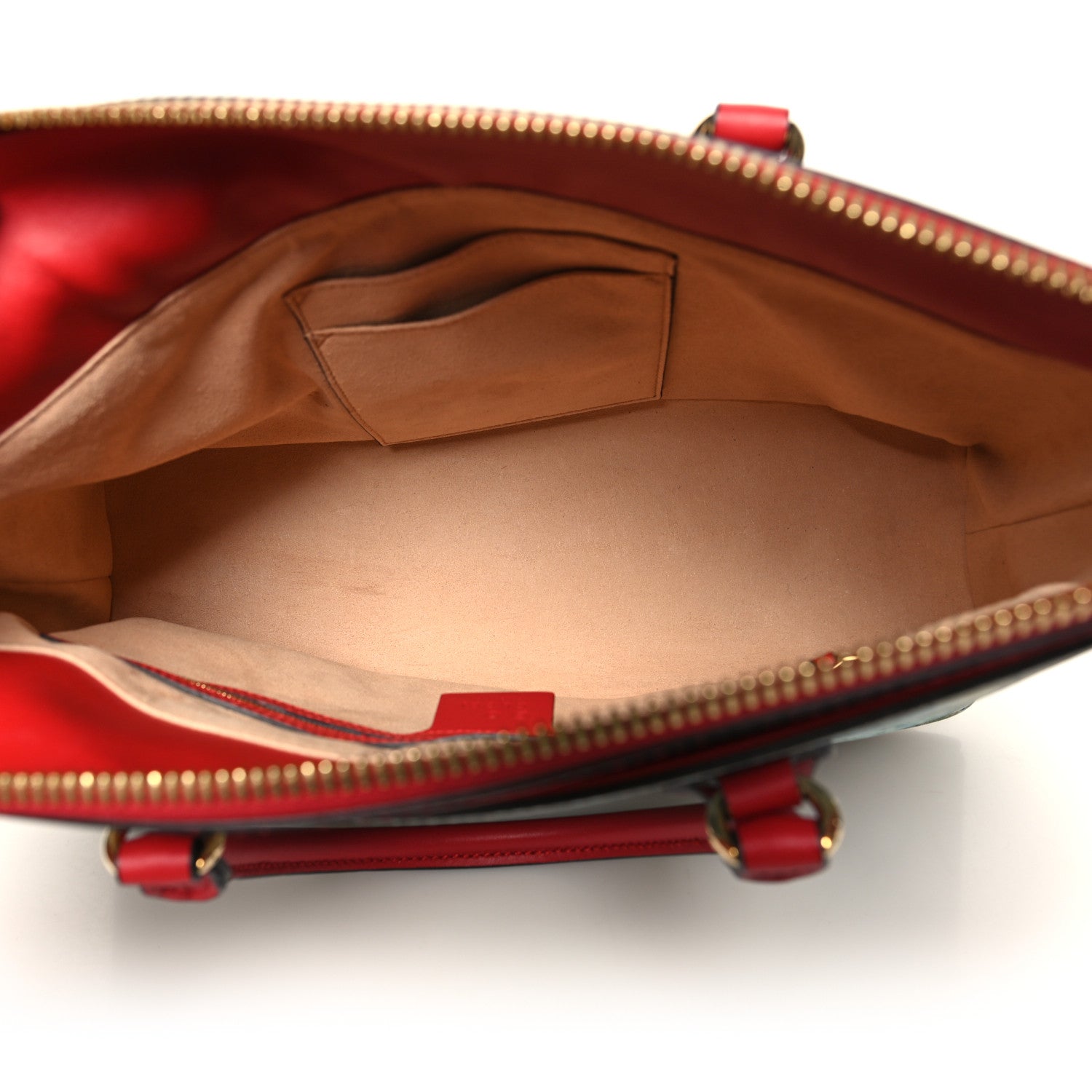 GG Supreme Monogram Blooms Medium Zip Top Tote Beige Blue Navy Hibiscus Red