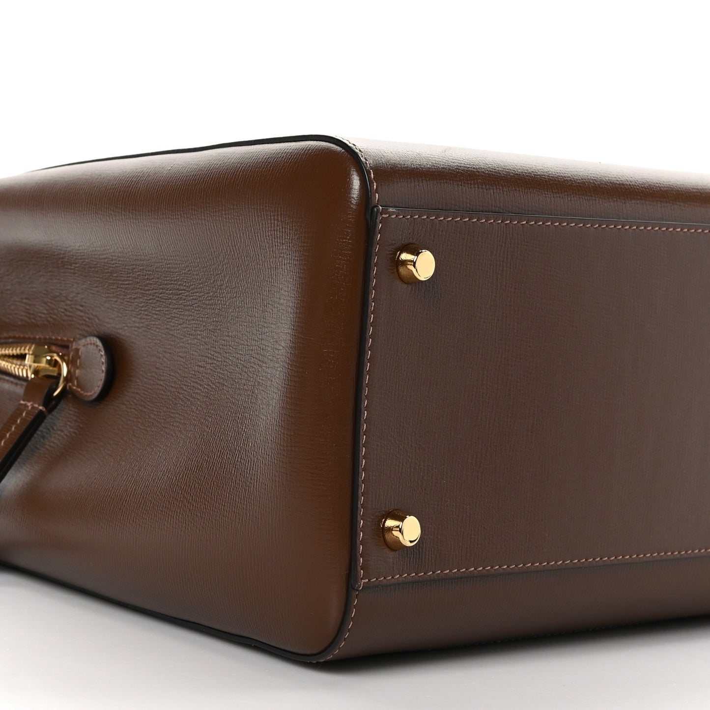 GG Supreme Monogram Azalea Calfskin Web Large Jackie 1961 Tote Beige Ebony Brown Sugar