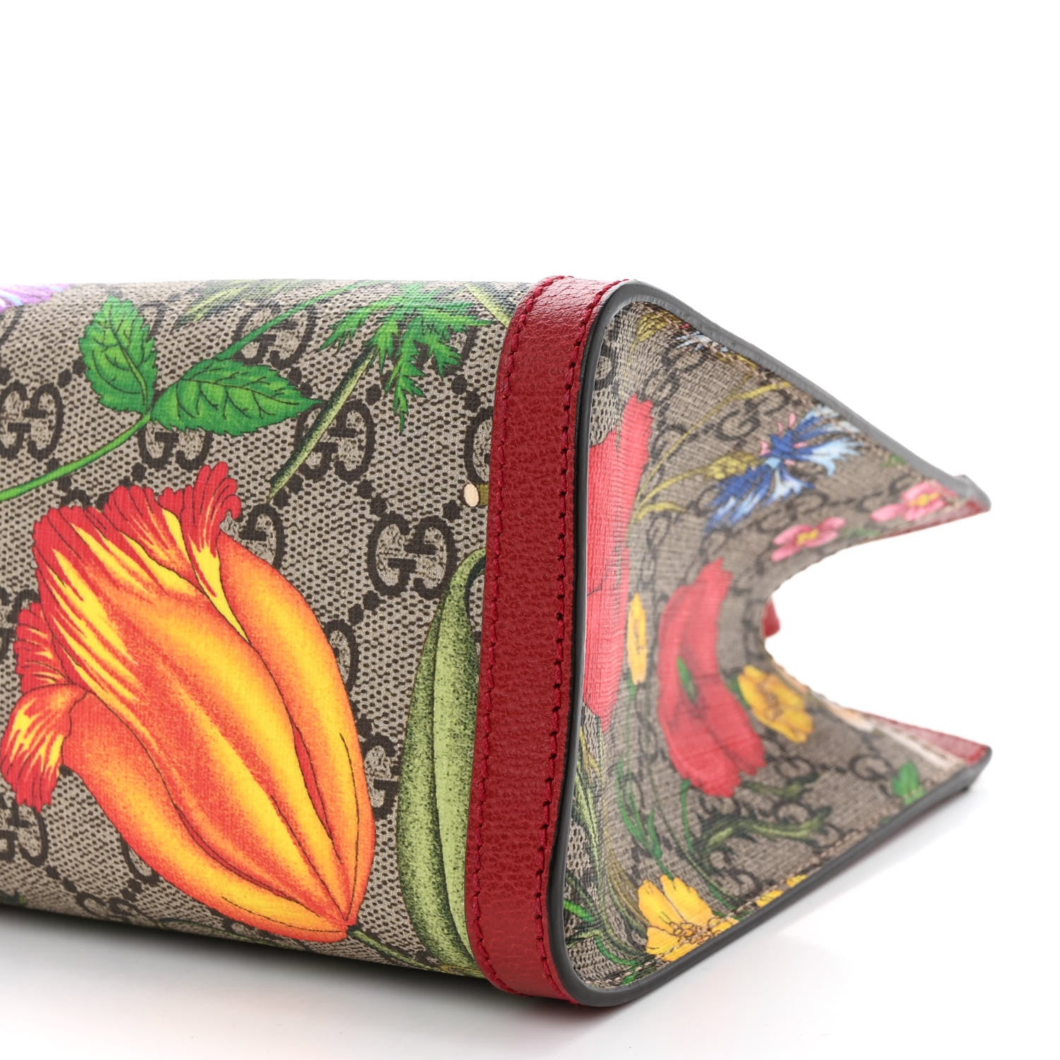 This is an authentic GUCCI GG Supreme Monogram Flora Small Padlock Tote in Red. This stylish handbag is crafted of canvas with a lovely bright colorful floral pattern. The tote features red leather trim, gold hardware, and red leather and gold chain shoulder straps. The top is open to a beige linen interior with patch pockets.Follow this item for alerts. Gucci is a registered trademark of Gucci. FASHIONPHILE is not affiliated with Gucci.