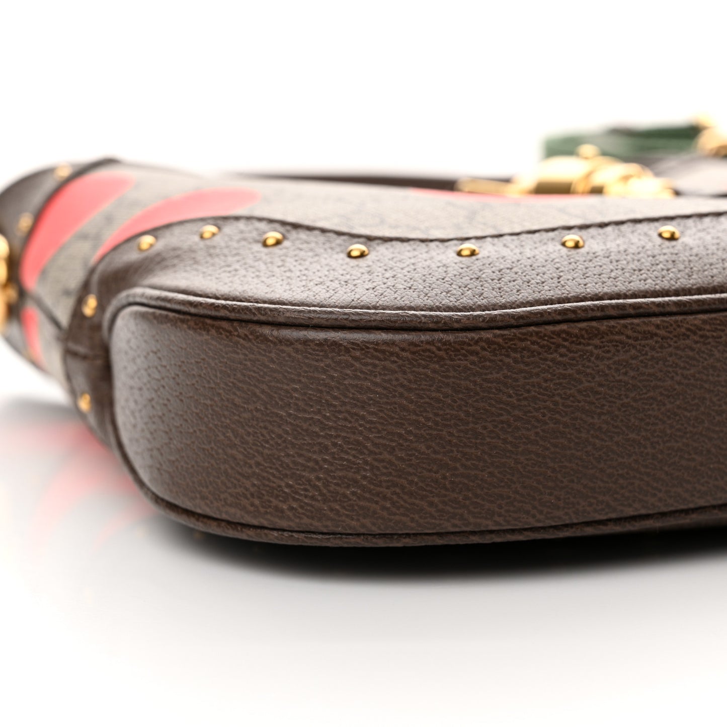 This is an authentic GUCCI GG Supreme Monogram Geometric Textured Dollar Calfskin Web Small Jackie 1961 Hobo. This Gucci hobo is beautifully crafted of brown Gucci monogram coated canvas and large red polka dots. The bag features a brown cowhide leather trim with studs, looping top leather top handle, corners, an optional green and yellow striped canvas shoulder strap, and gold-tone hardware. This secures with a gold-tone piston lock and opens to a beige fabric interior with a zipper pocket.Follow this item for alerts. Gucci is a registered trademark of Gucci. FASHIONPHILE is not affiliated with Gucci.