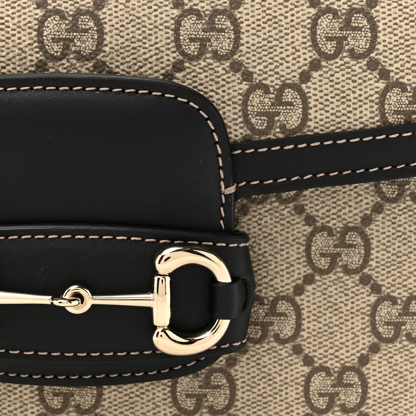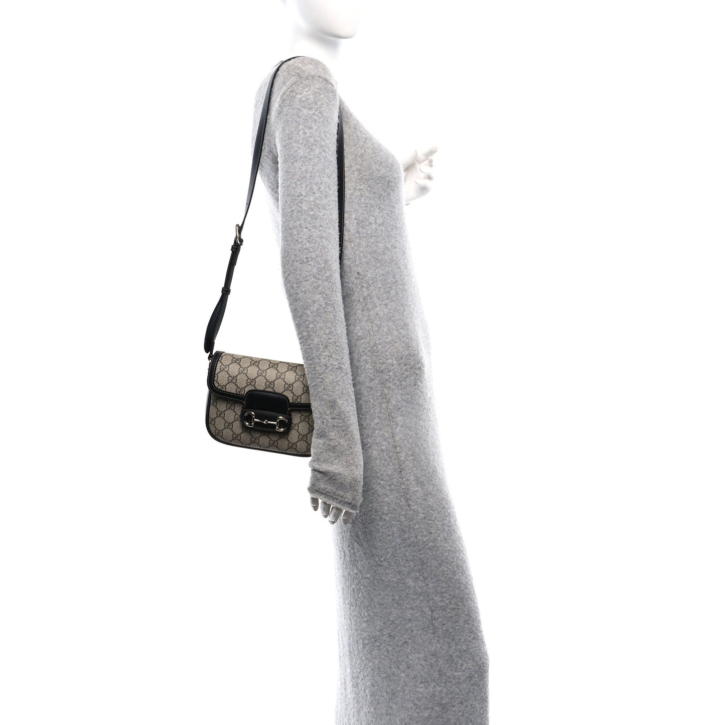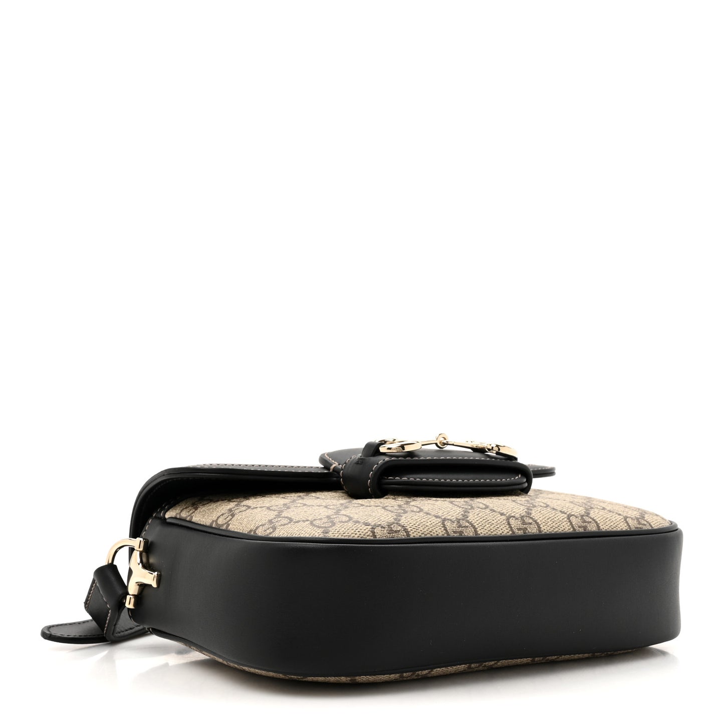 GG Supreme Monogram Horsebit 1955 Soft Small Shoulder Bag Beige Black