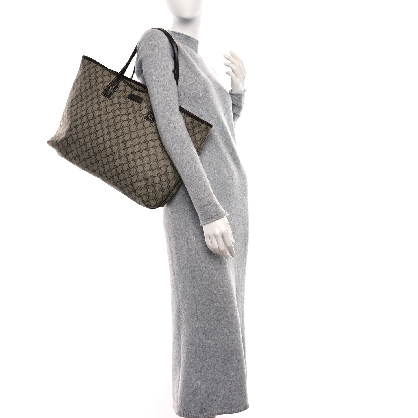 GG Supreme Monogram Medium Zippered Shopping Tote Dark Brown