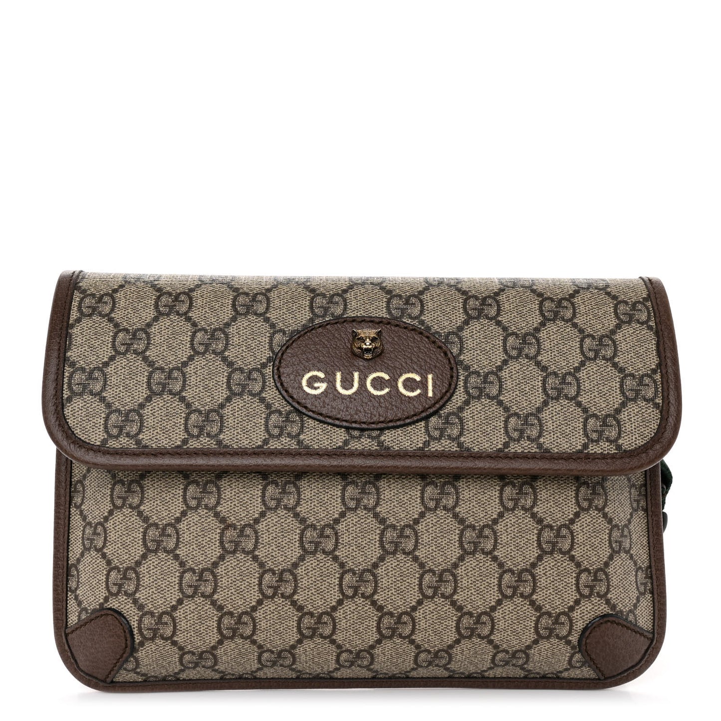 This is an authentic GUCCI GG Supreme Monogram Neo Vintage Web Belt Bag in Brown. This belt bag is crafted of the classic GG supreme monogram coated canvas with brown leather trim. The bag features the signature green and red web adjustable canvas strap and a gold tiger embellishment on the front. The front flap opens to a beige fabric interior.Follow this item for alerts. Gucci is a registered trademark of Gucci. FASHIONPHILE is not affiliated with Gucci.