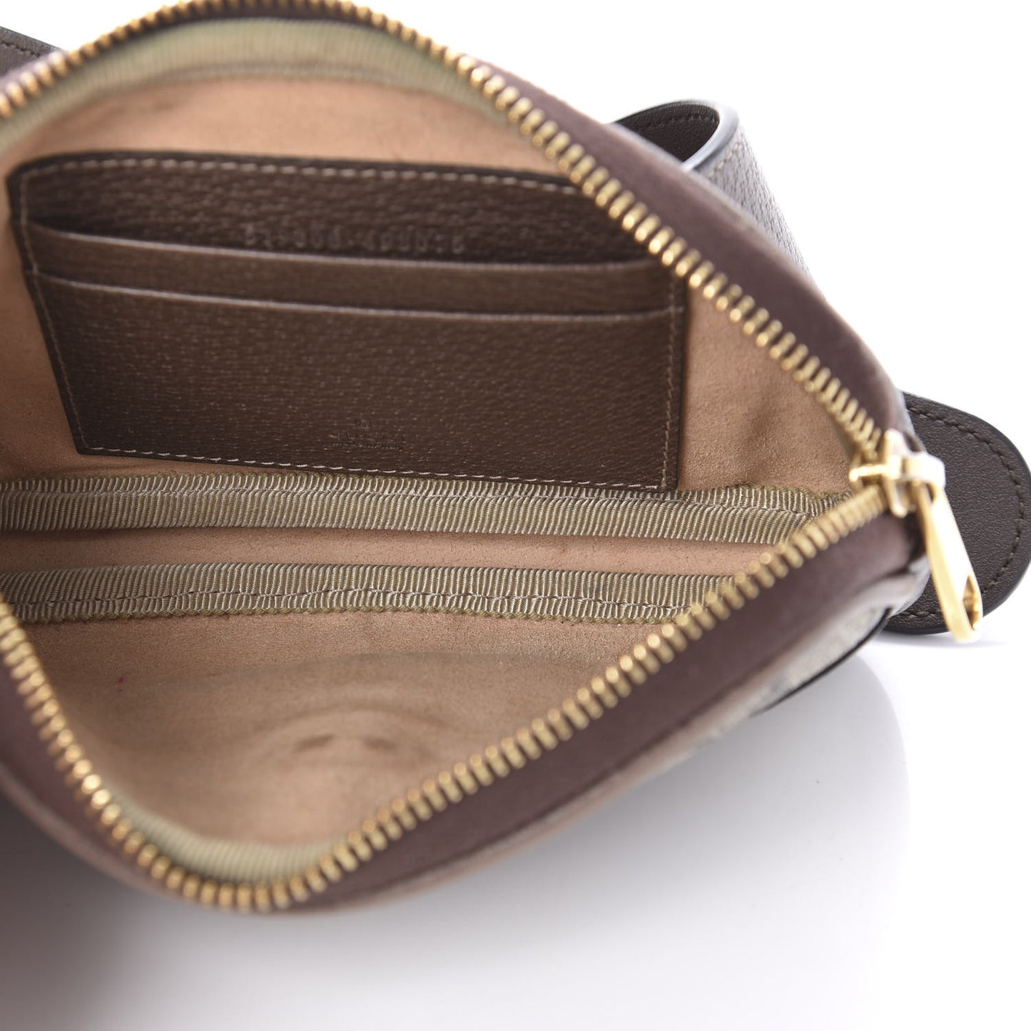 This is an authentic GUCCI GG Supreme Monogram Ophidia Belted iPhone Case 75 30 in Dark Brown. This chic belt bag is finely crafted of coated Gucci GG monogram coated canvas. The bag features a zipper pocket and a web green and red center fabric detail with an adjustable leather belt strap with gold hardware. The zipper opens to a beige microfiber interior with a path pocket. This is a fantastic bag for everyday essentials with the stylish sophistication of Gucci!Follow this item for alerts. Gucci is a registered trademark of Gucci. FASHIONPHILE is not affiliated with Gucci.
