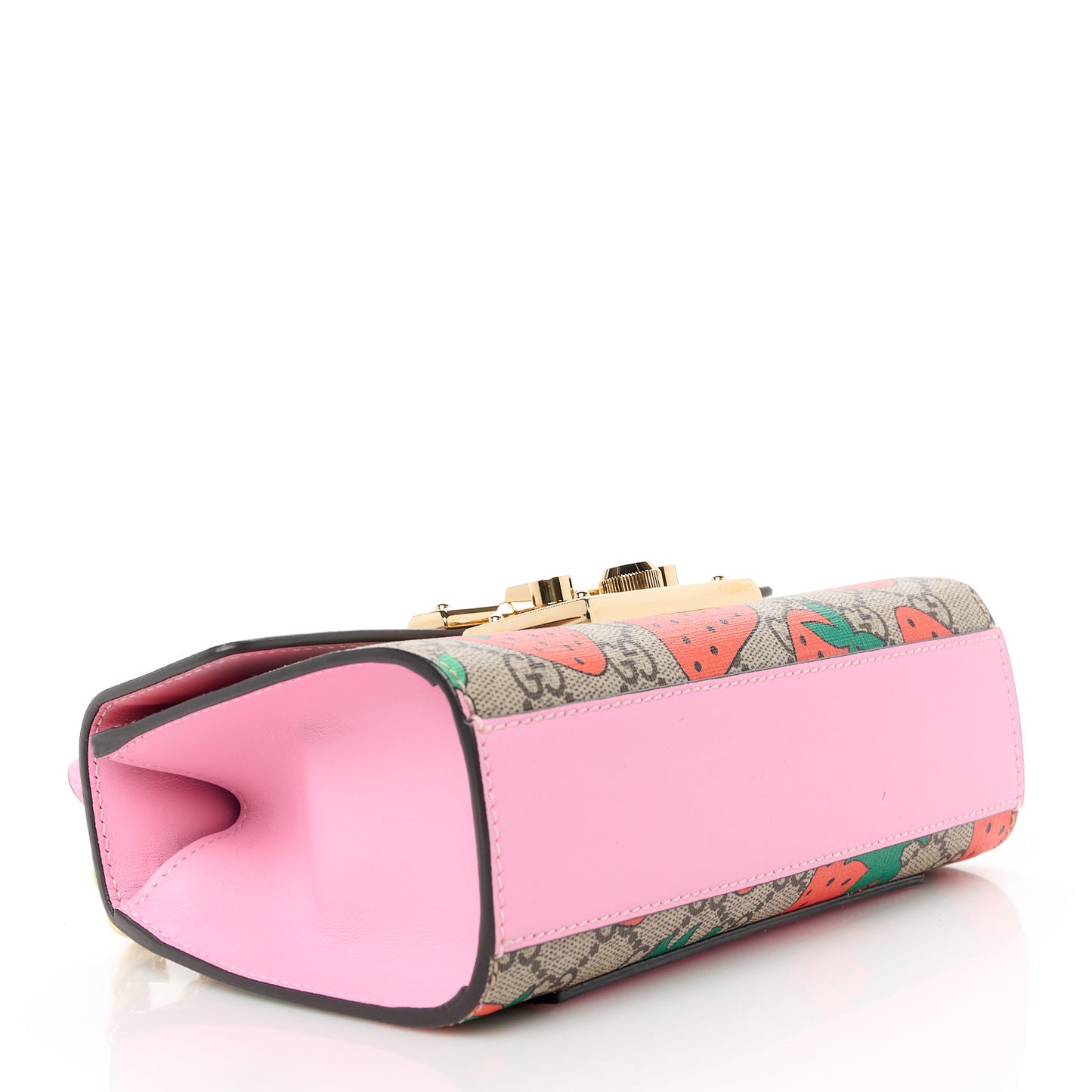 GG Supreme Monogram Strawberry Small Padlock Shoulder Bag