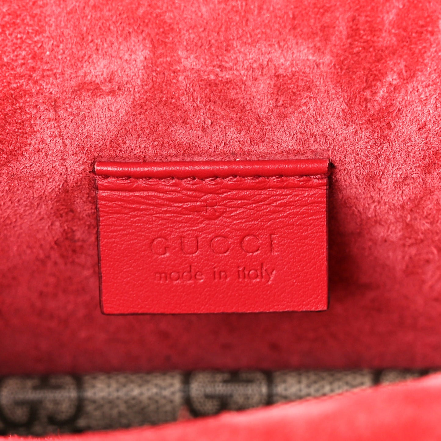 GG Supreme Monogram Suede Crystal Small Dionysus Shoulder Bag Beige Ebony Vulcanic Red