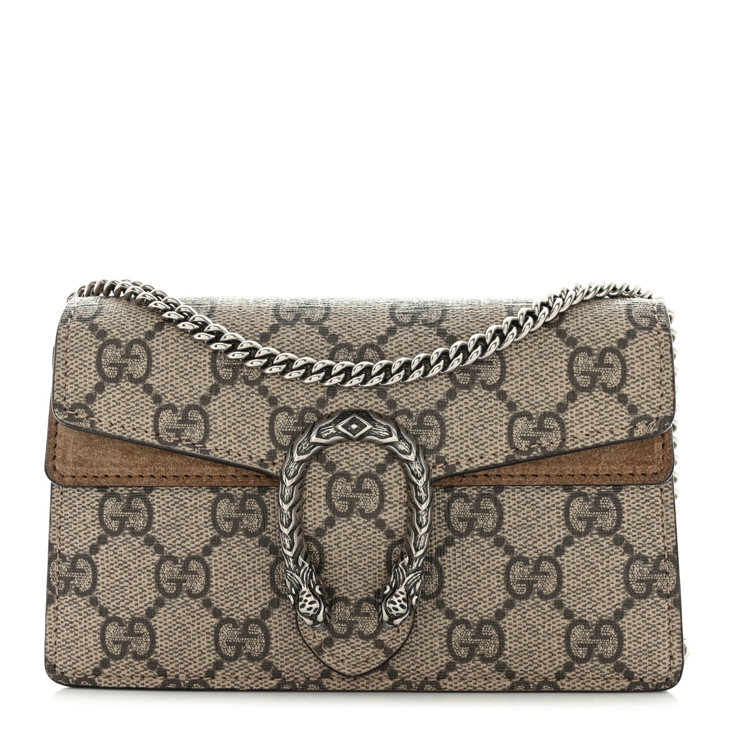 Gucci/ Bags/ Shoulder Bags /Gucci GG Supreme Monogram Super Mini Dionysus Shoulder Bag Taupe