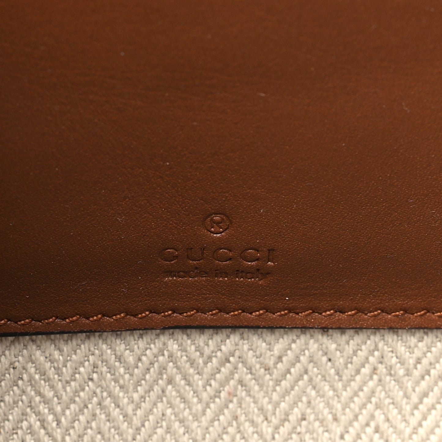 Gucci/ Bags/ Accessories /Gucci GG Supreme Monogram Textured Calfskin Emblem Mini Crossbody Beige Dark Brown