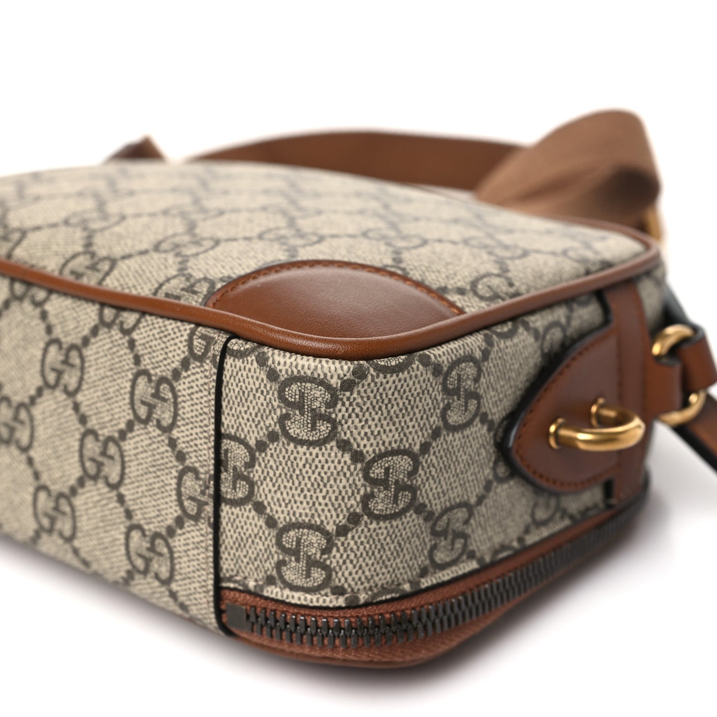 GG Supreme Monogram Textured Calfskin Emblem Mini Crossbody Beige Dark Brown