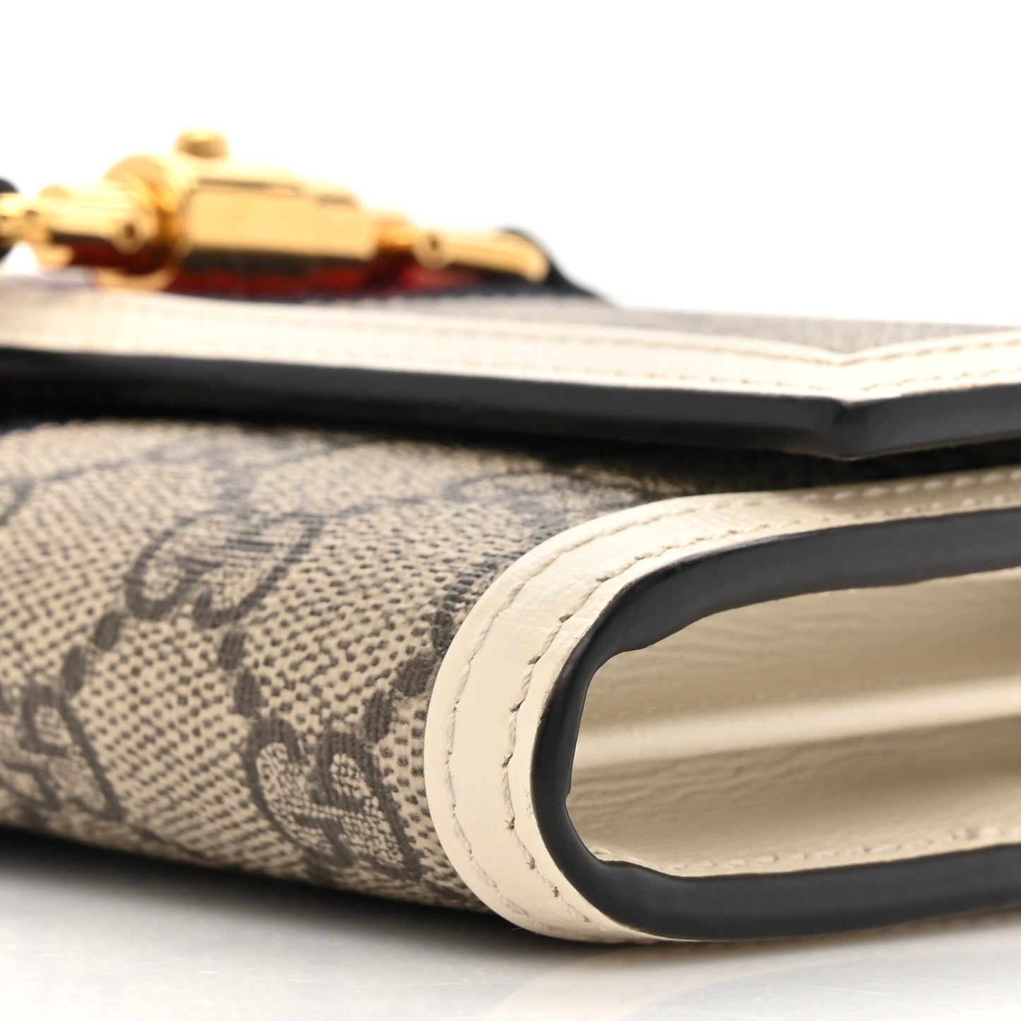 GG Supreme Monogram Textured Calfskin Web Jackie 1961 Chain Wallet Beige Ebony Mystic White