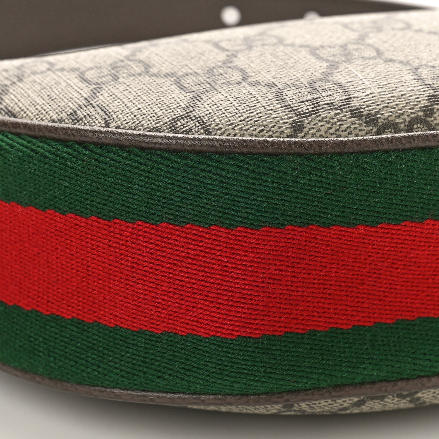 GG Supreme Monogram Textured Calfskin Web Mini Ophidia Half Moon Hobo Beige Ebony New Acero