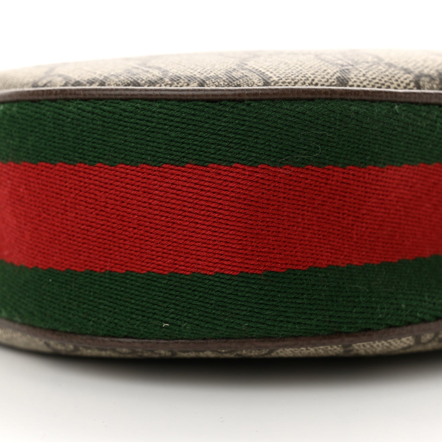GG Supreme Monogram Textured Calfskin Web Mini Ophidia Half Moon Hobo Beige Ebony New Acero