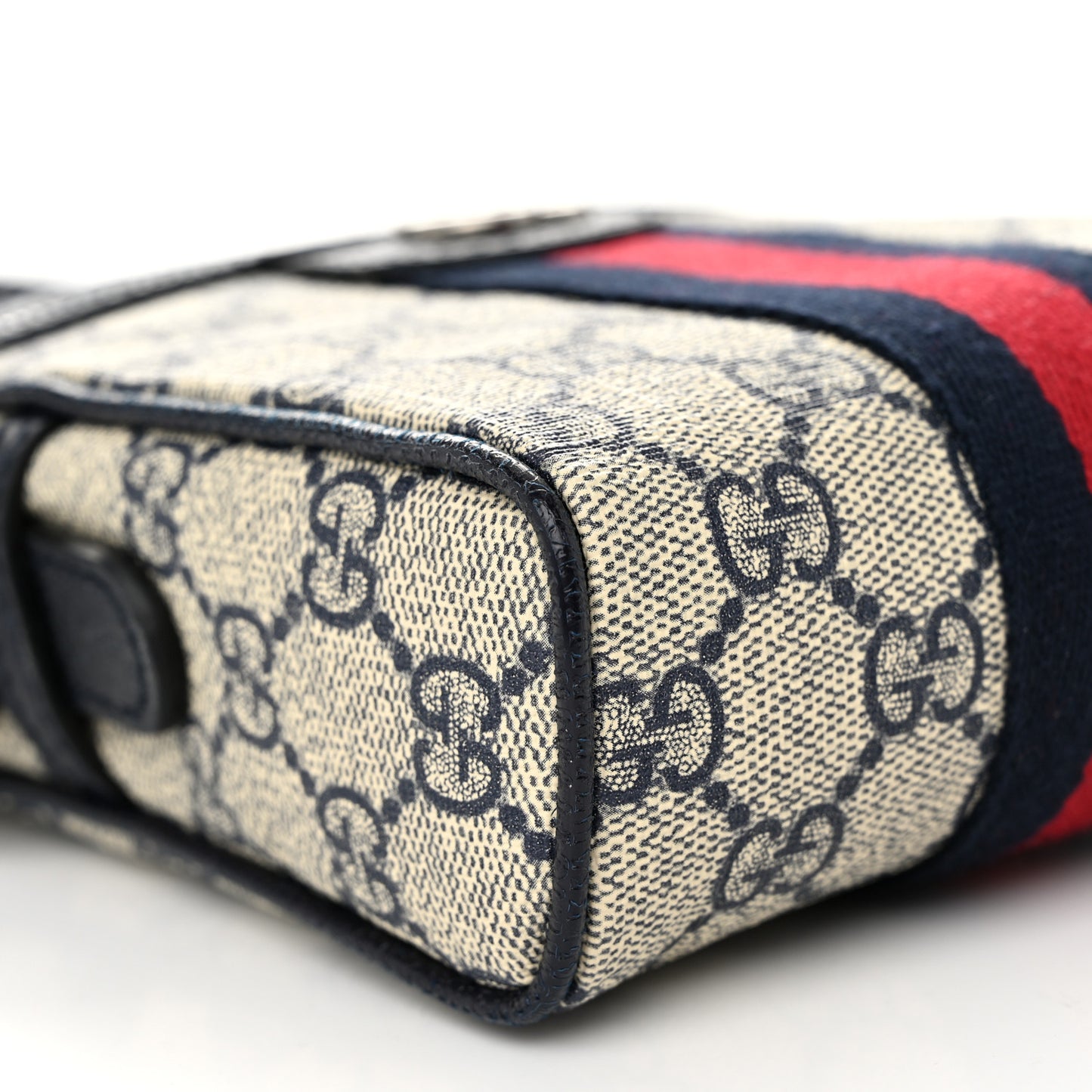GG Supreme Monogram Textured Calfskin Web Mini Ophidia Messenger Beige Blue
