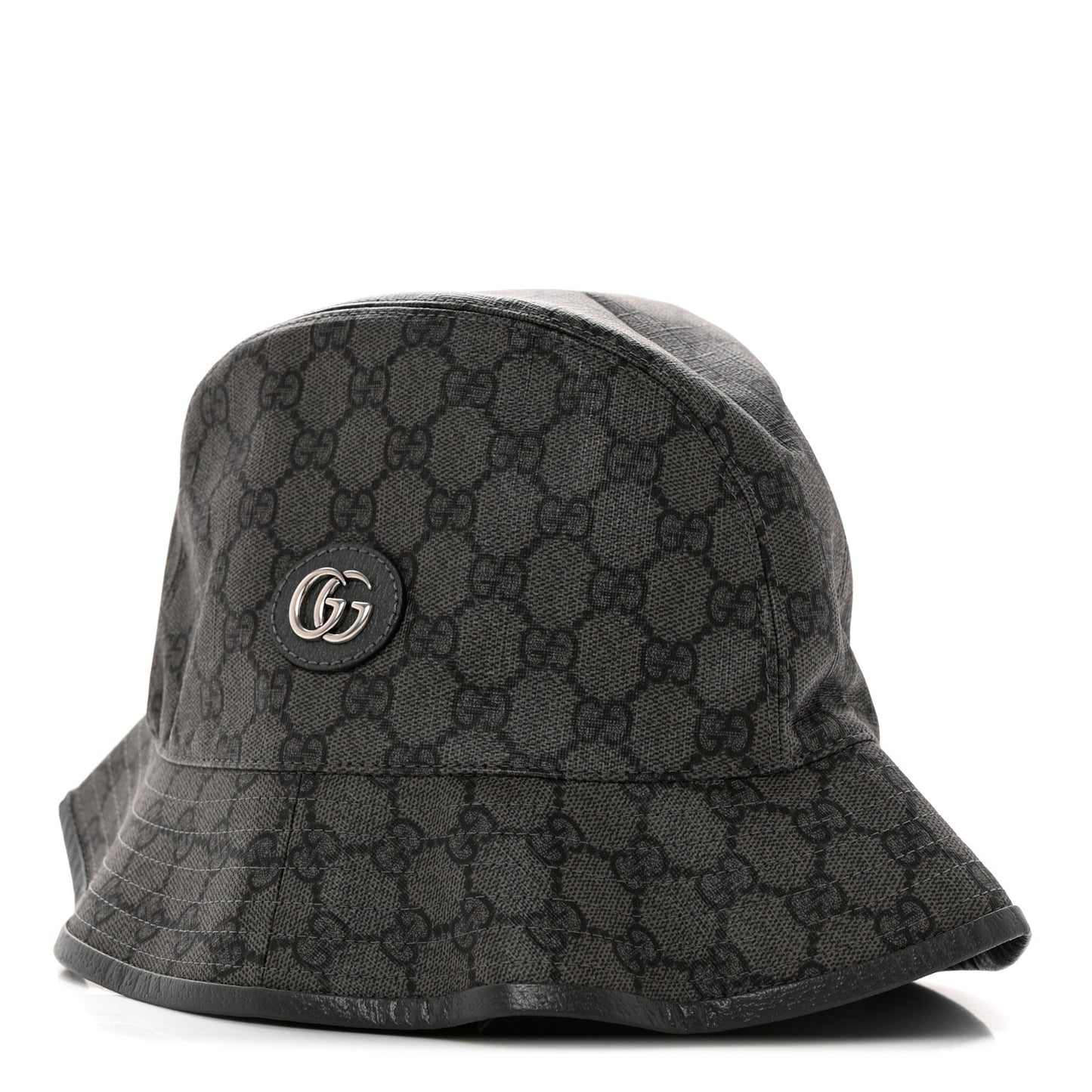 This is an authentic GUCCI GG Supreme Monogram Textured Dollar Calfskin GG Blackie Fedora Hat size L in Grey, Black, and Graphite. This stylish hat is crafted of monogrammed black on grey coated canvas with a grey leather trim and a silver GG logo on a leather patch on the front.Follow this item for alerts. Gucci is a registered trademark of Gucci. FASHIONPHILE is not affiliated with Gucci.
