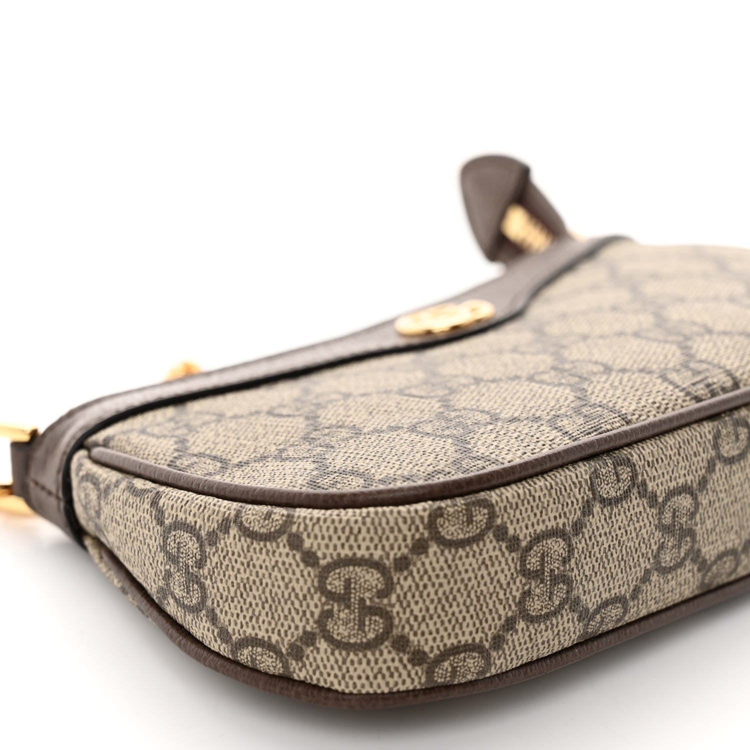 This is an authentic GUCCI GG Supreme Monogram Textured Dollar Calfskin Mini Ophidia Chain Bag in Beige, Ebony, and New Acero. This chic shoulder bag is finely crafted of brown on beige Gucci monogram-coated canvas. The bag features brown leather trim and polished gold hardware. The top zipper opens the bag to a beige microfiber interior with a card slot.Follow this item for alerts. Gucci is a registered trademark of Gucci. FASHIONPHILE is not affiliated with Gucci.