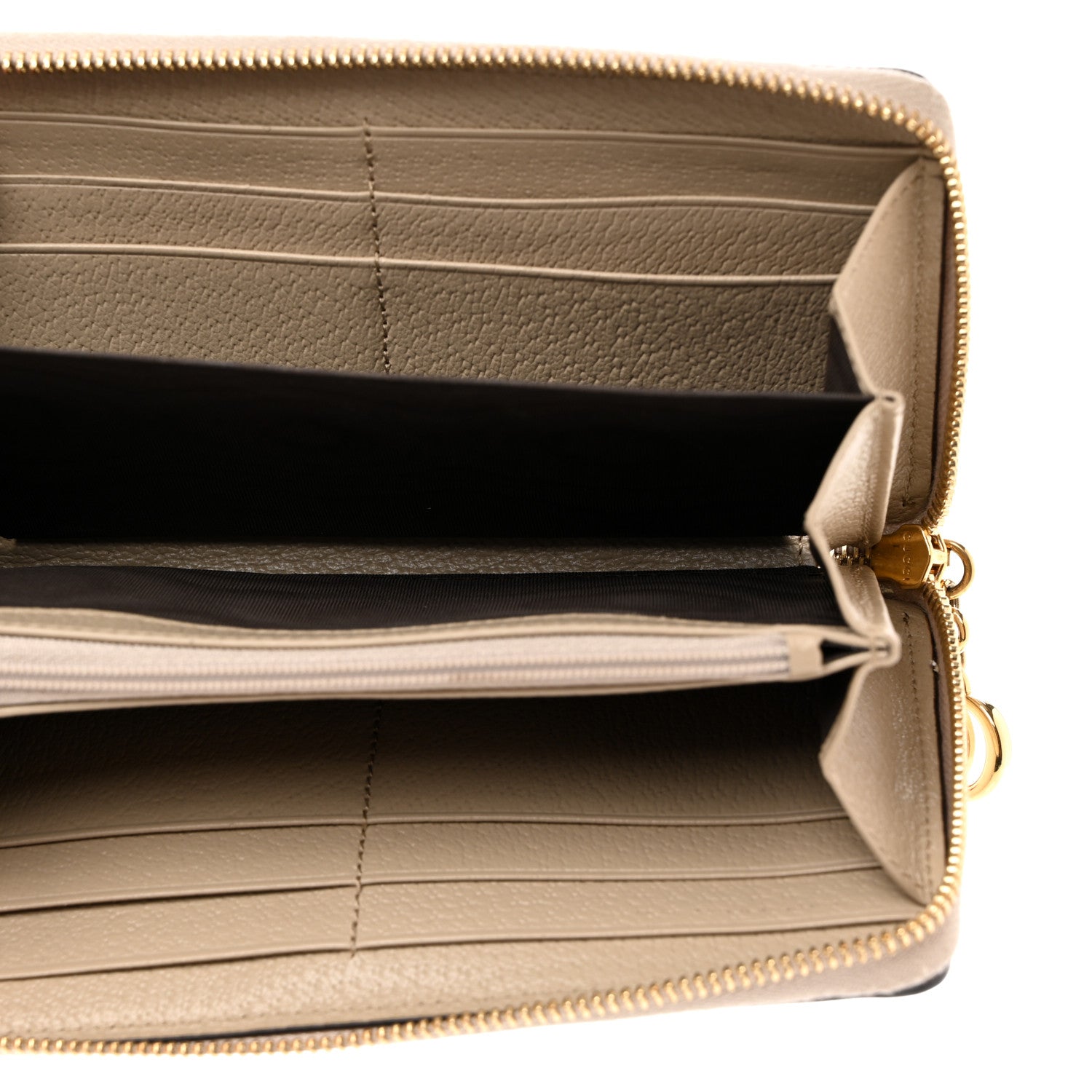 GG Supreme Monogram Textured Dollar Calfskin Web Ophidia Zip Around Wallet Beige Mystic White Oatmeal