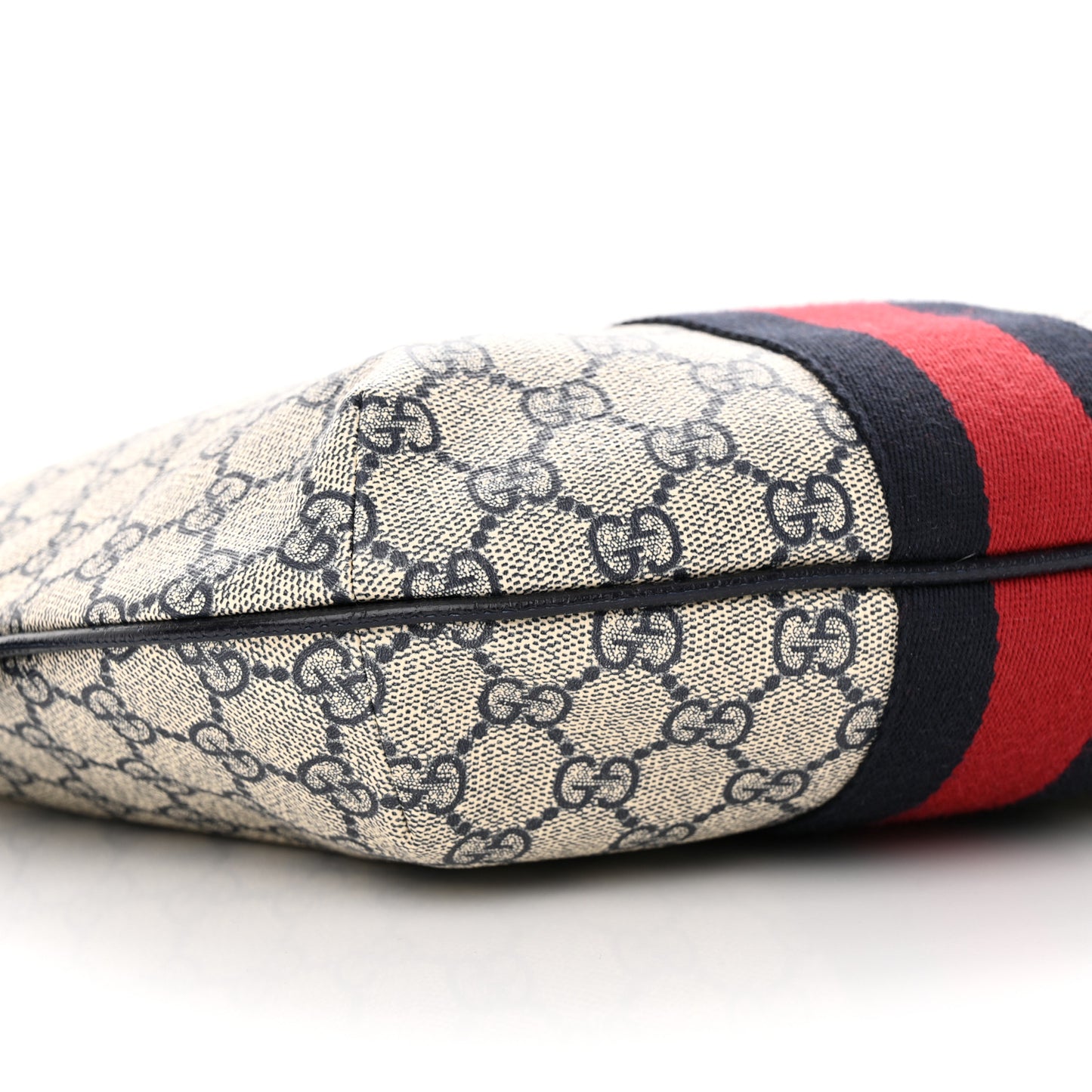 Gucci/ Bags/ Shoulder Bags /Gucci GG Supreme Monogram Textured Dollar Calfskin Web Small Ophidia Half Moon Hobo Beige Blue