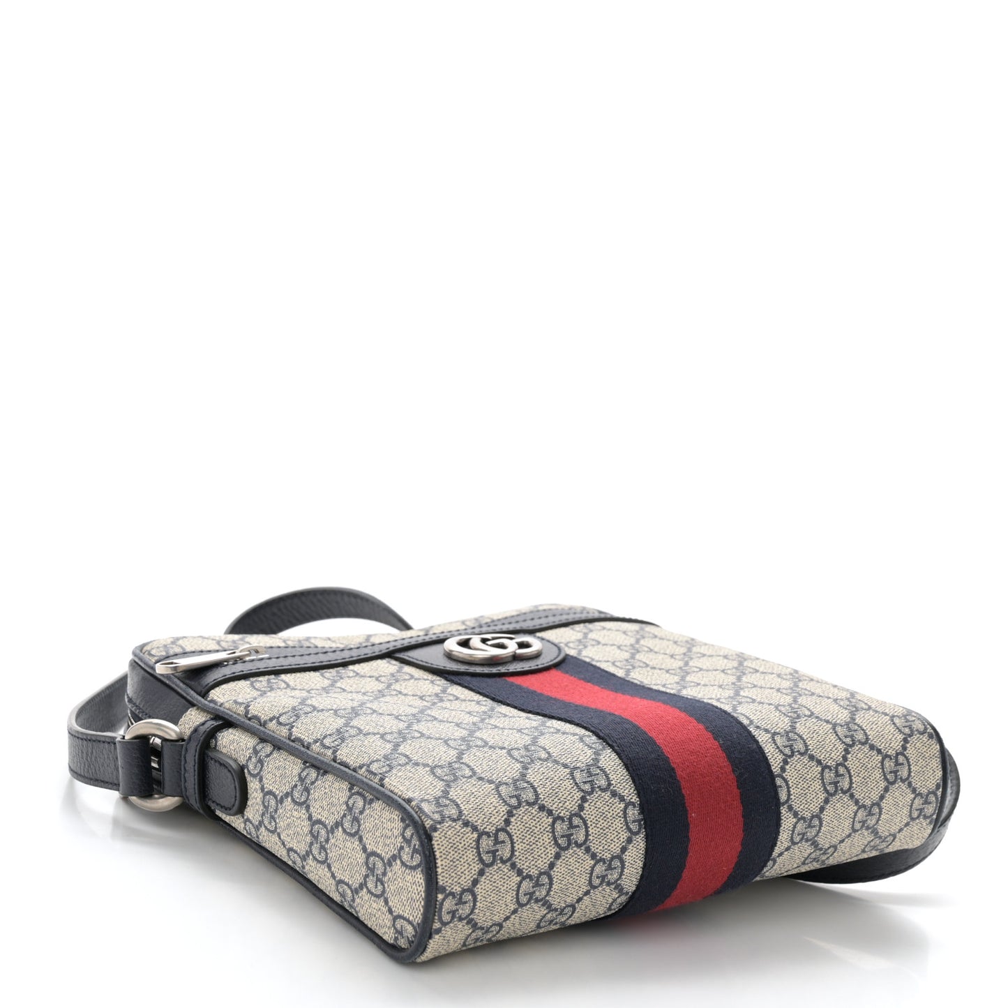 GG Supreme Monogram Textured Dollar Calfskin Web Small Ophidia Messenger Bag Beige Blue
