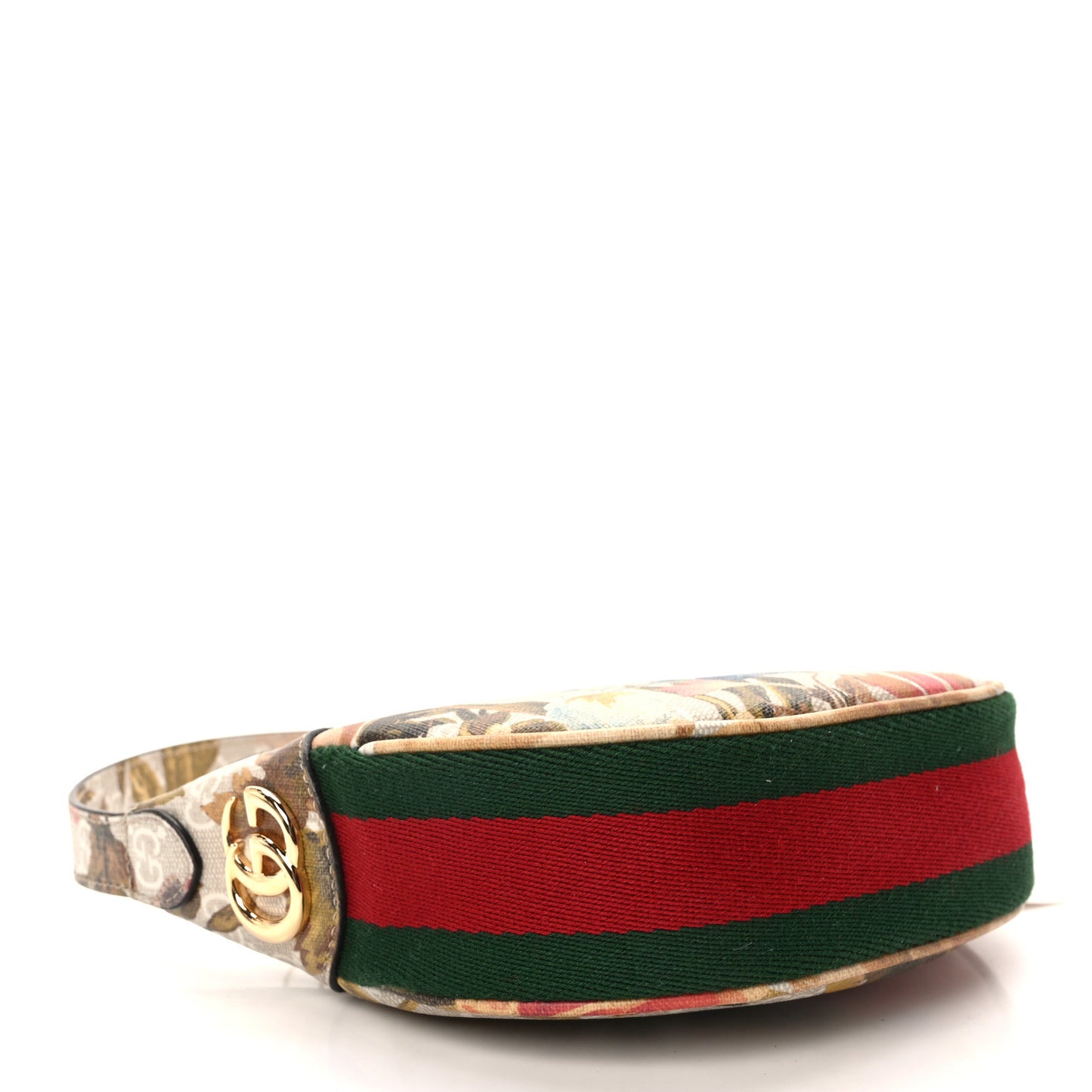 GG Supreme Monogram Water Flora Web Mini Ophidia Half Moon Hobo Beige Blue Multicolor