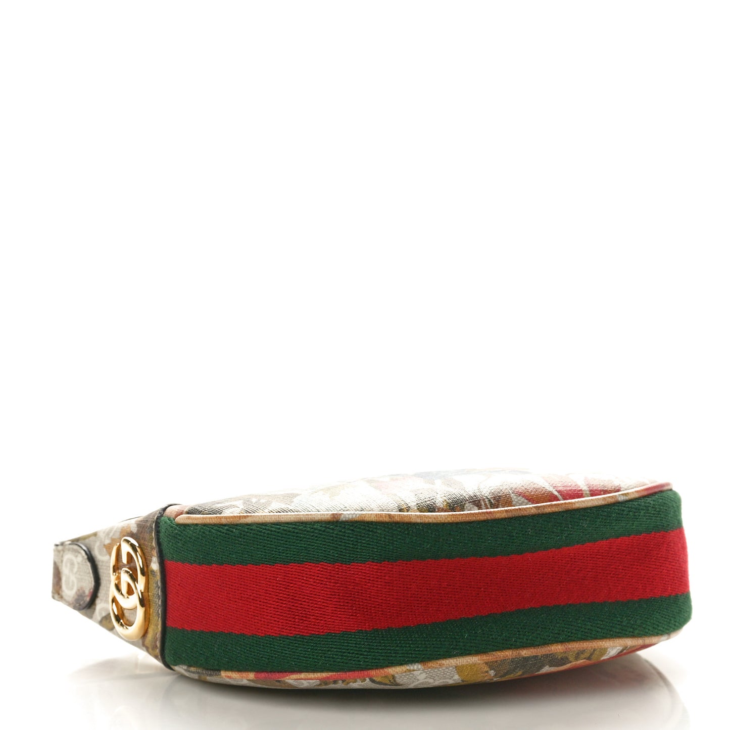 GG Supreme Monogram Water Flora Web Mini Ophidia Half Moon Hobo Beige White Multicolor