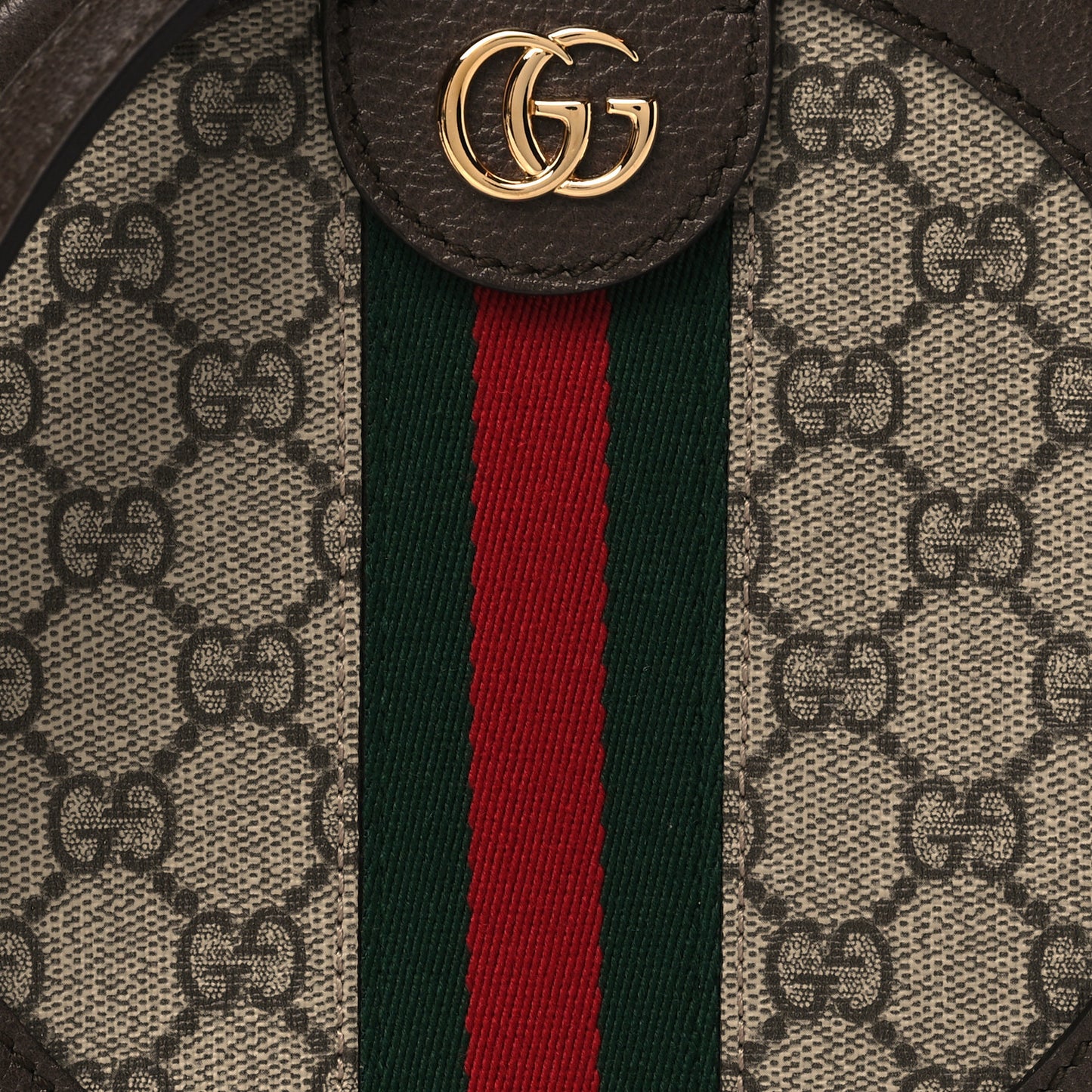 GG Supreme Monogram Web Mini Ophidia Round Shoulder Bag Brown