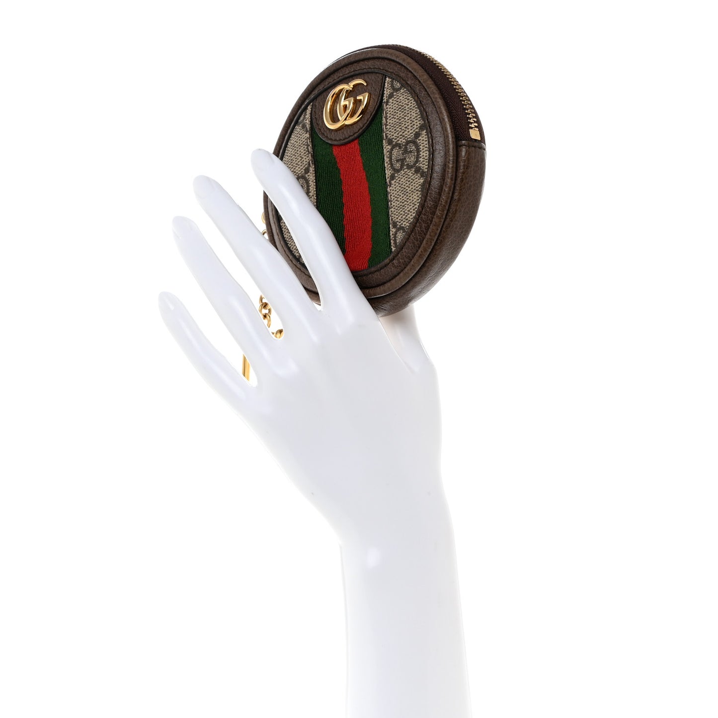 Gucci/ Accessories/ Pouches /Gucci GG Supreme Monogram Web Ophidia Round Coin Purse Beige New Acero