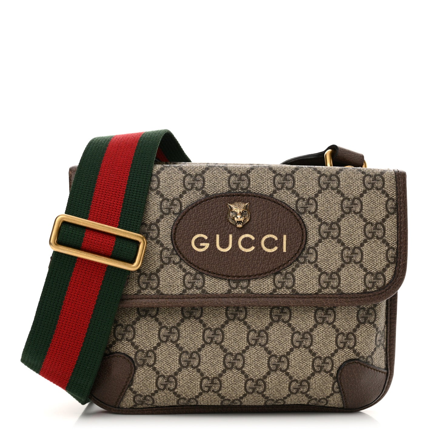 Gucci/ Bags/ Men's Bags /Gucci GG Supreme Monogram Web Small Neo Vintage Double Flap Messenger Bag Brown