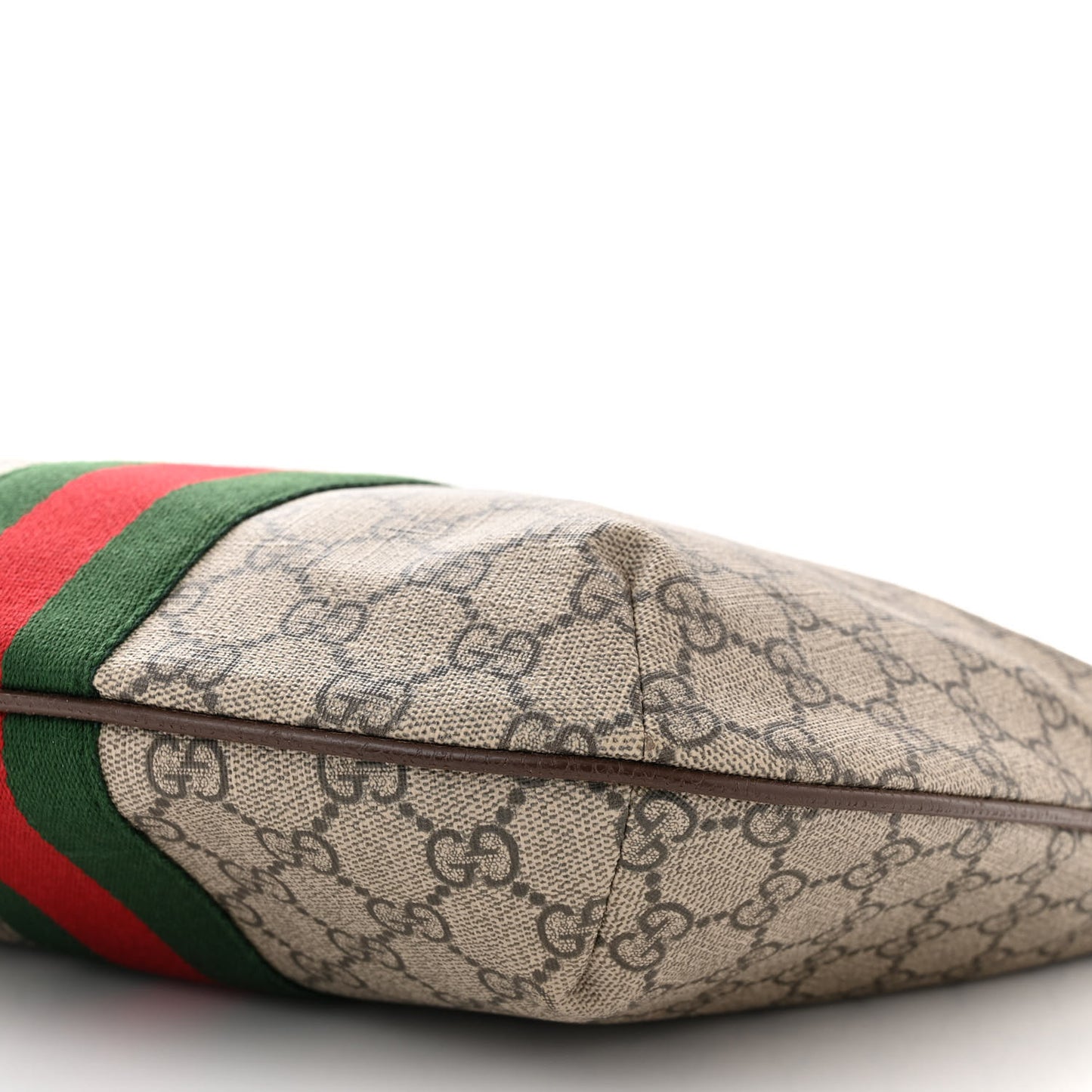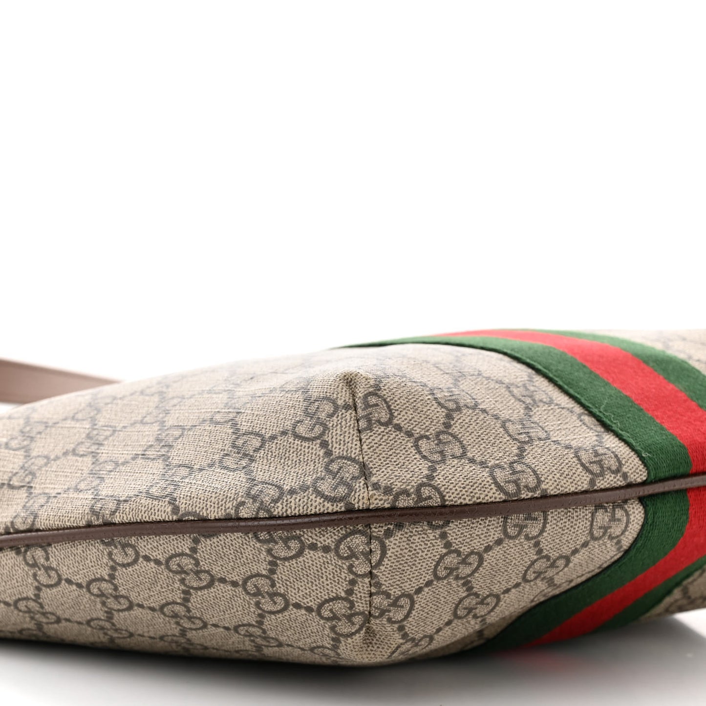 This is an authentic GUCCI GG Supreme Monogram Web Small Ophidia Half Moon Hobo in Brown. This hobo is crafted of traditional brown on beige Gucci GG canvas. The bag features a signature red and green web stripe down the center and an adjustable brown cowhide leather shoulder strap. The top zipper opens to an off-white fabric interior with a zipper pocket.Follow this item for alerts. Gucci is a registered trademark of Gucci. FASHIONPHILE is not affiliated with Gucci.