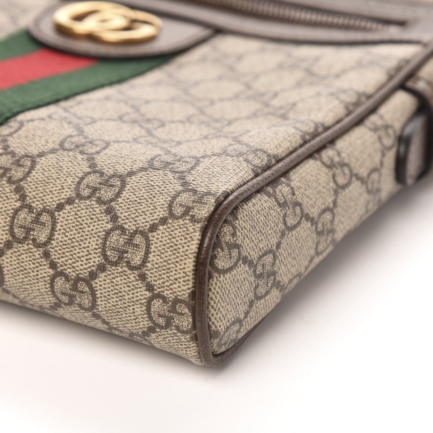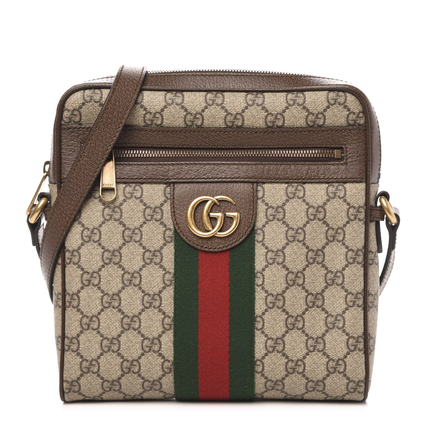 This is the authentic GUCCI GG Supreme Monogram Web Small Ophidia Messenger Bag in Brown. This camera style crossbody bag is crafted of monogram coated canvas with brown leather trim. The bag features a brown leather adjustable shoulder strap, a front zipper pocket with the signature green and red web, and aged gold hardware. This opens to a linen fabric interior with zipper and patch pockets.Follow this item for alerts. Gucci is a registered trademark of Gucci. FASHIONPHILE is not affiliated with Gucci.