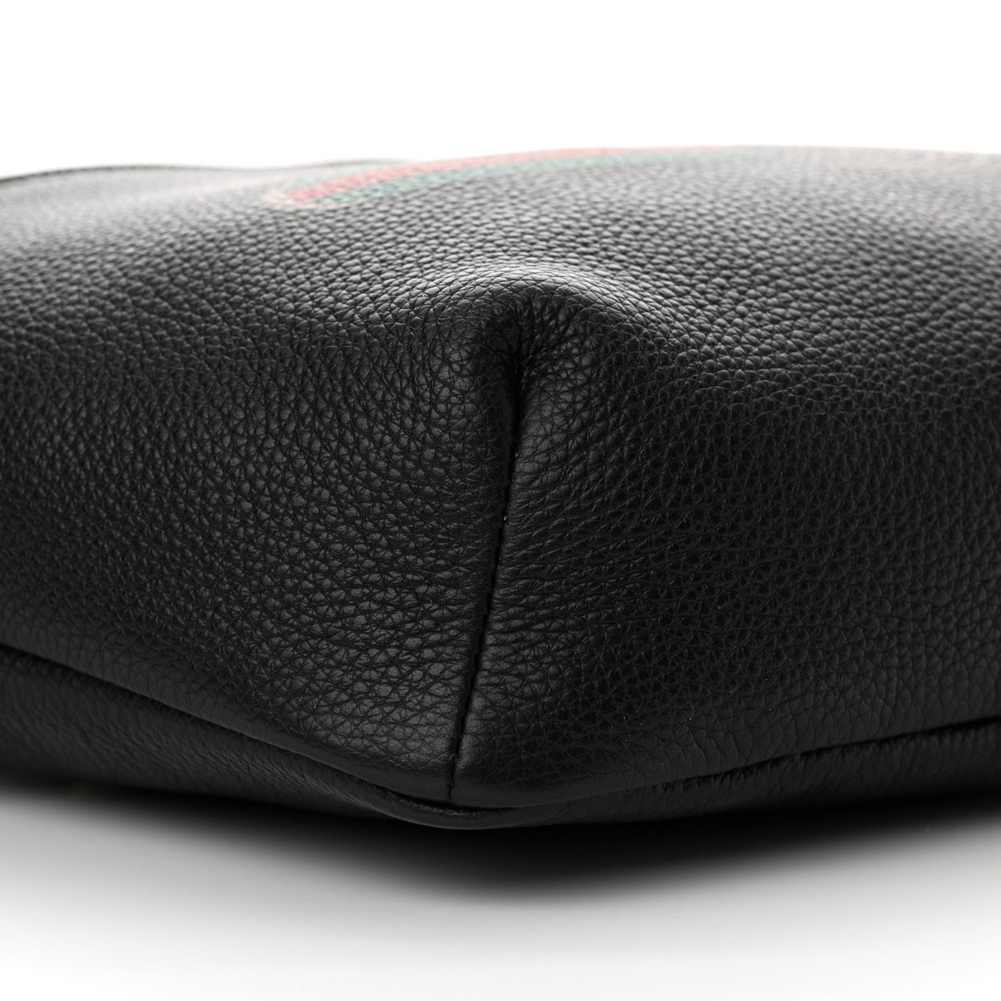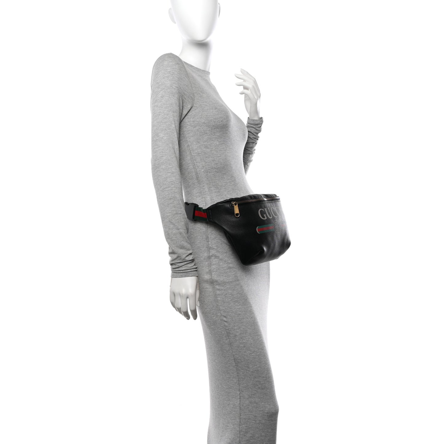 This is an authentic GUCCI Grained Calfskin Logo Belt Bag in Black. This chic belt bag is crafted of grained black calfskin leather, with a vintage Gucci logo on the front. This bag has an adjustable red and green web stripe canvas belt, and an aged gold top zipper that opens to a beige fabric interior.Follow this item for alerts. Gucci is a registered trademark of Gucci. FASHIONPHILE is not affiliated with Gucci.