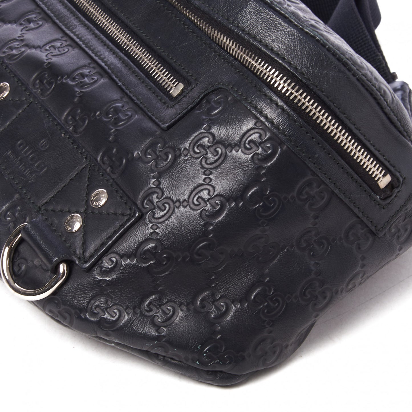 This is an authentic GUCCI Guccissima Web Belt Bag in Navy. This chic belt bag is finely crafted of signature Guccissima monogram embossed leather in navy. The bag features an exterior front zip pocket, an adjustable blue belt strap, and silver tones hardware.Follow this item for alerts. Gucci is a registered trademark of Gucci. FASHIONPHILE is not affiliated with Gucci.