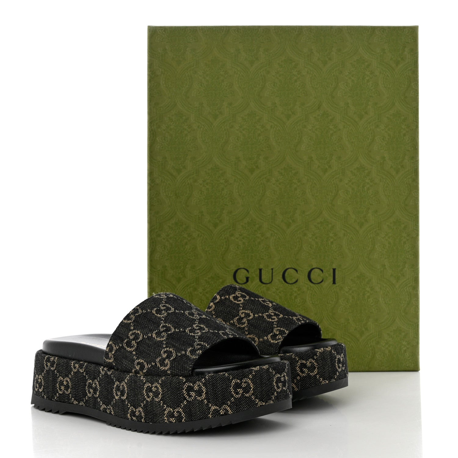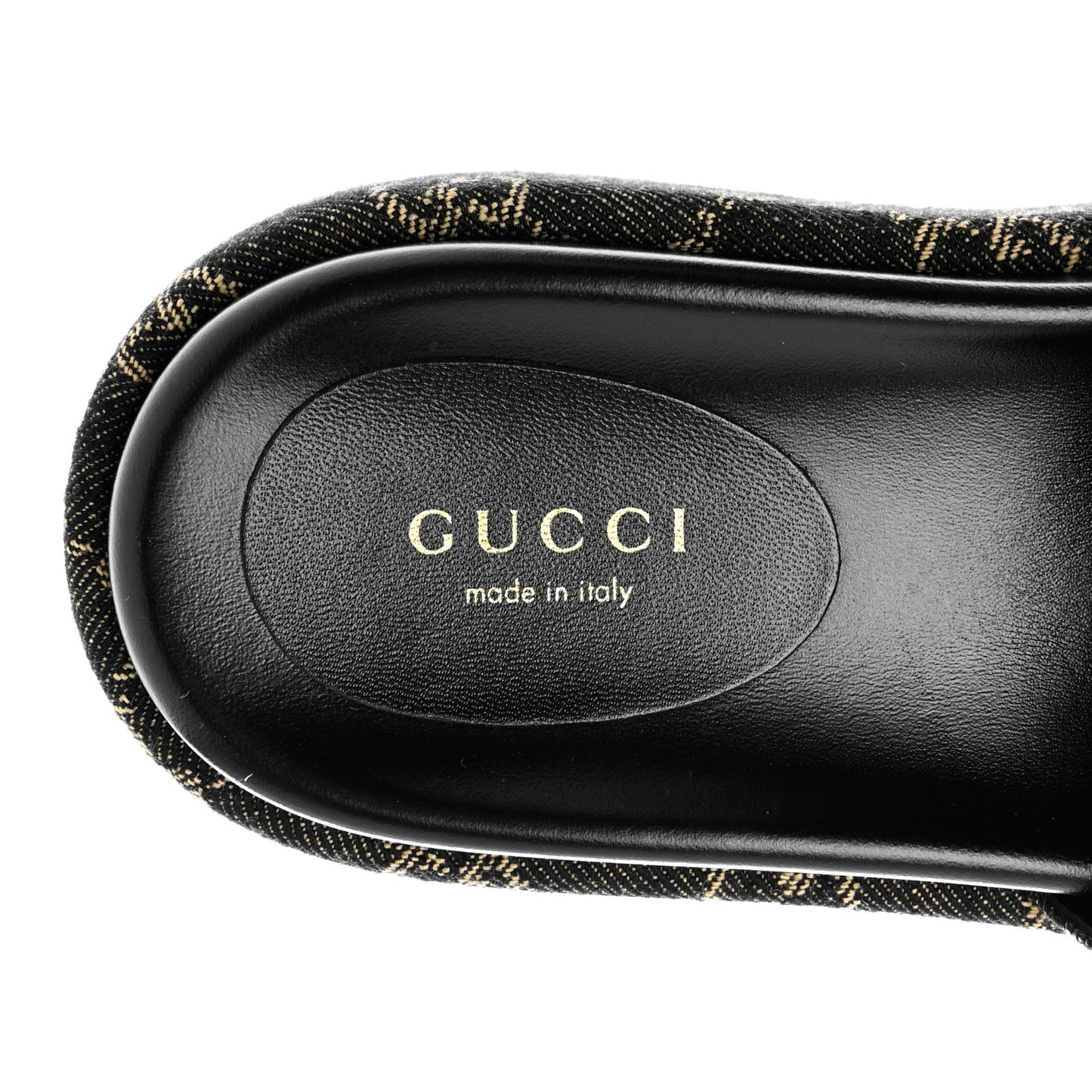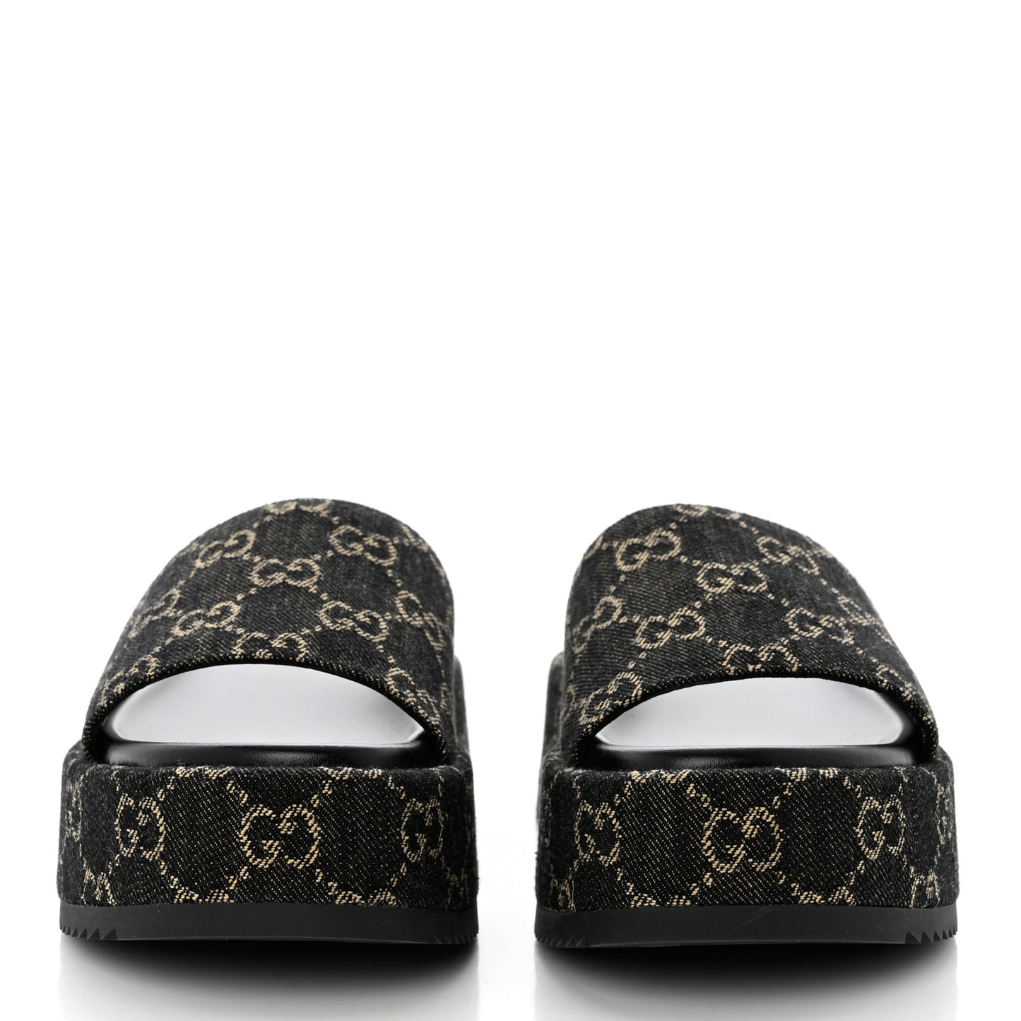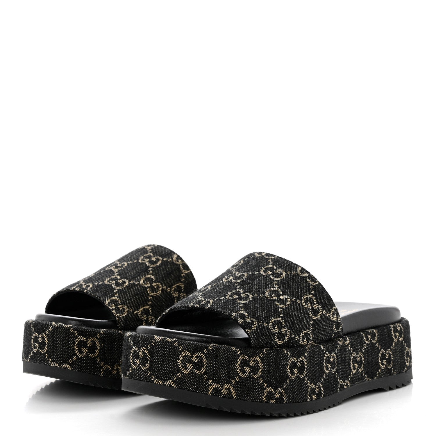 Gucci/ Accessories/ Shoes /Gucci Jacquard Black Denim GG Monogram Angelina Platform 55mm Slide Sandals 36 Black Ivory
