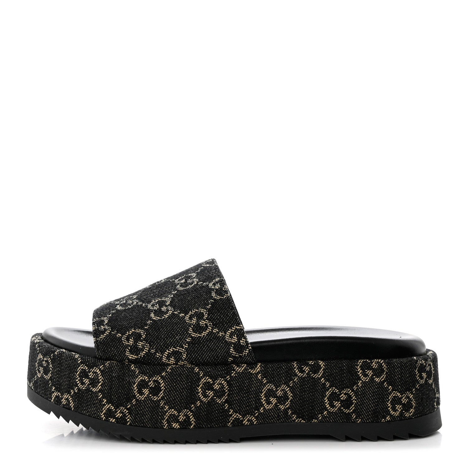 Jacquard Black Denim GG Monogram Angelina Platform 55mm Slide Sandals 36 Black Ivory