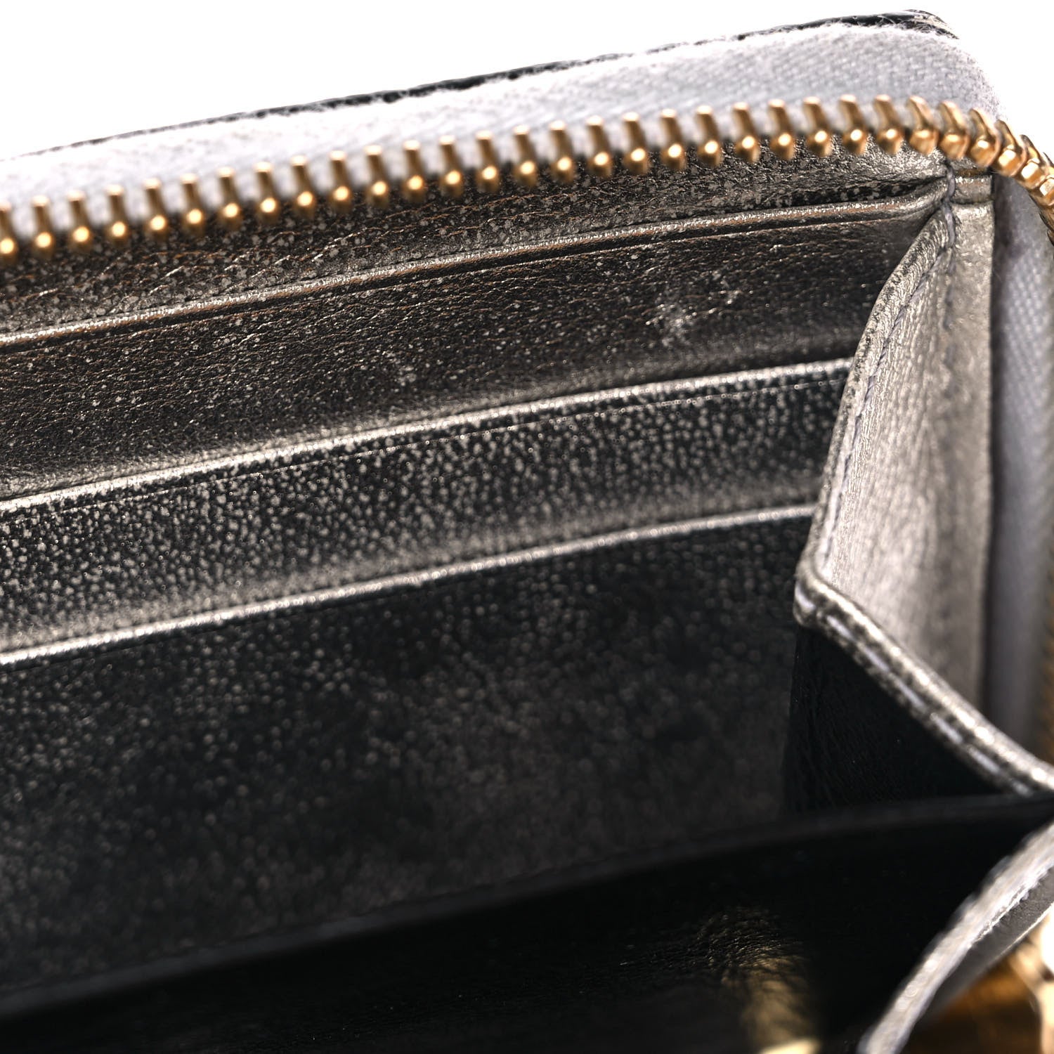 Gucci/ Accessories/ Wallets /Gucci Laminated Lizard GG Marmont Zip-Around Wallet Silver