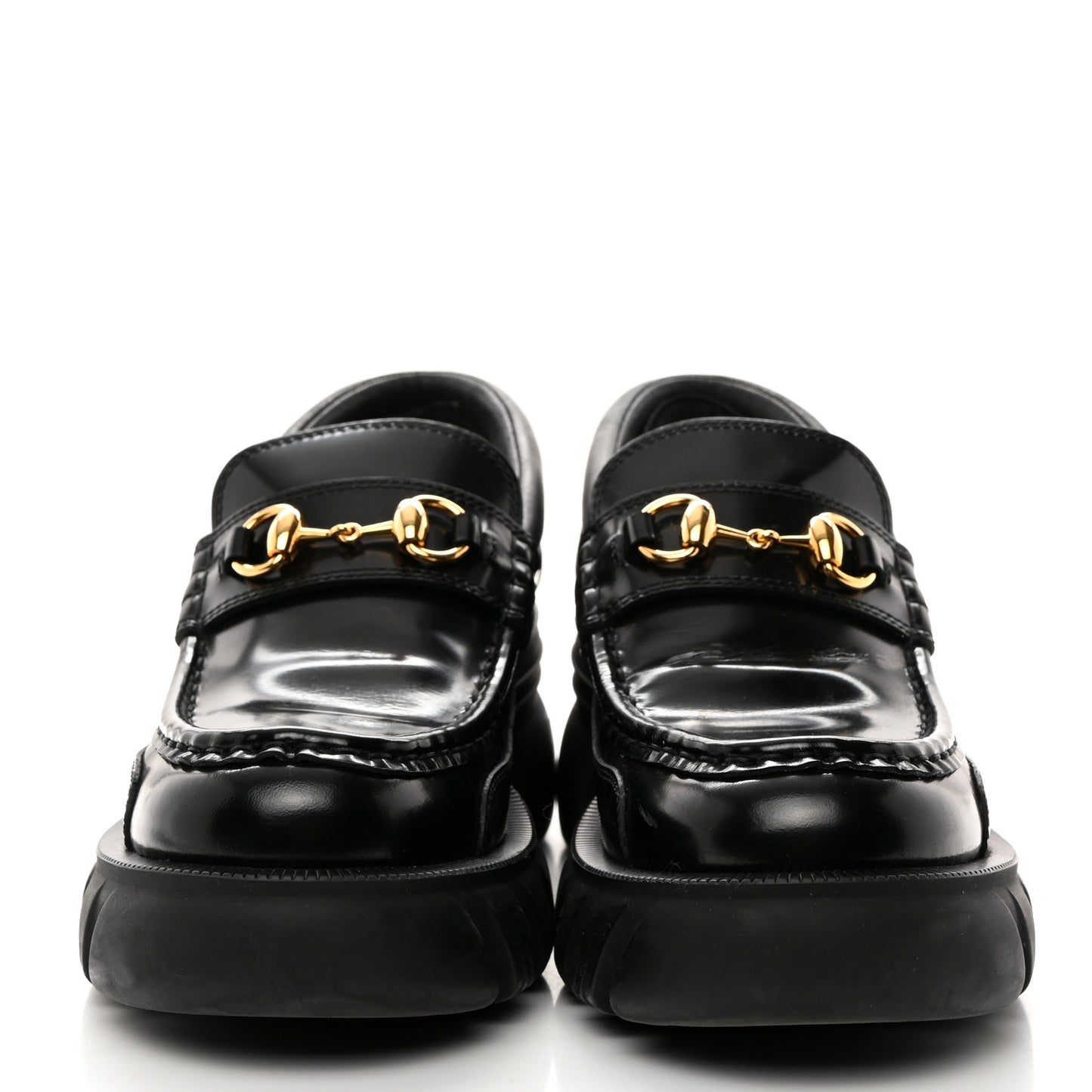 Gucci/ Accessories/ Shoes /Gucci Magnum Calfskin Nappa Samoa Womens Horsebit Platform Chunky Lug Sole 40mm Loafers 38 Black