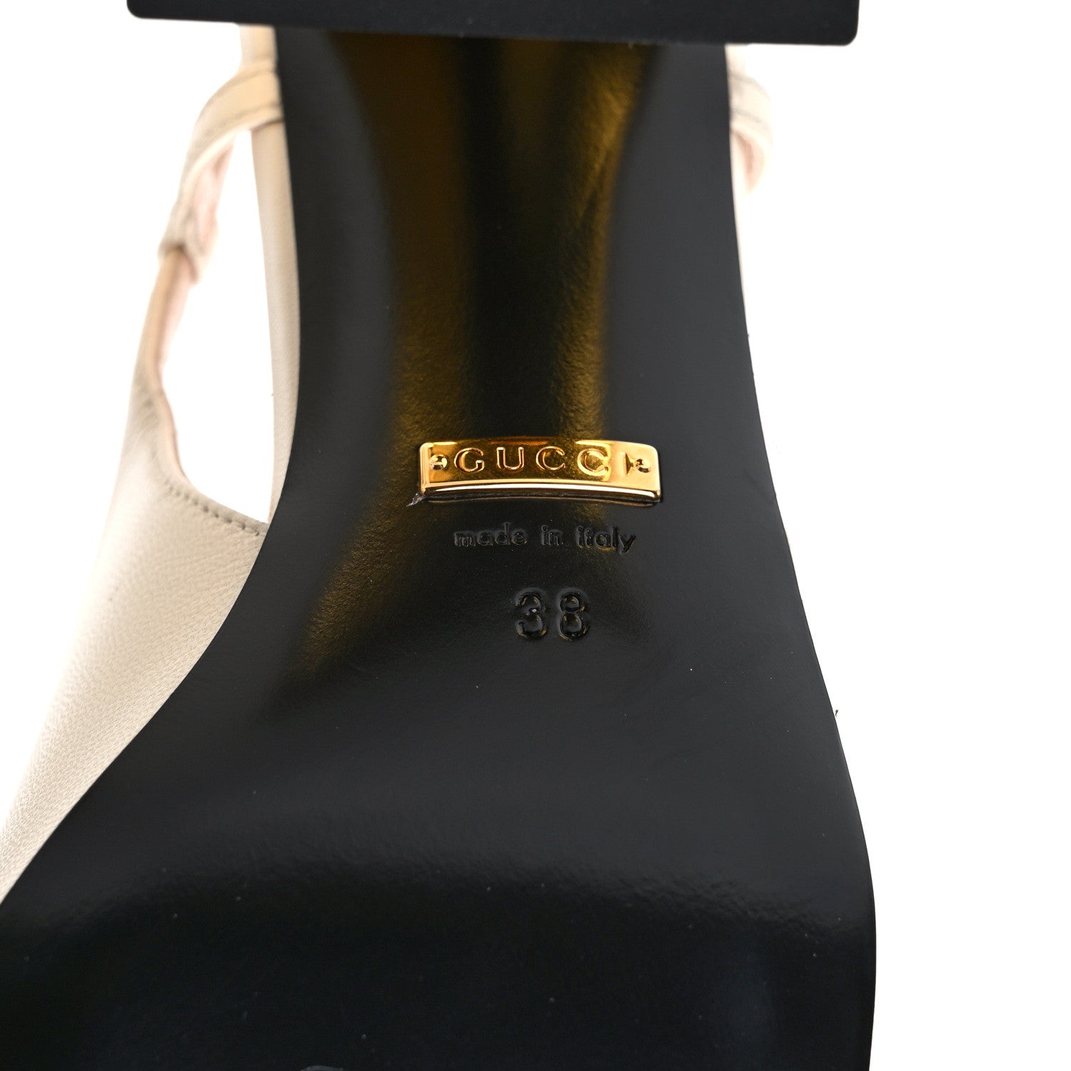 Gucci/ Accessories/ Shoes /Gucci Malaga Kid Horsebit 75mm Slingback Pumps 38 Mystic White
