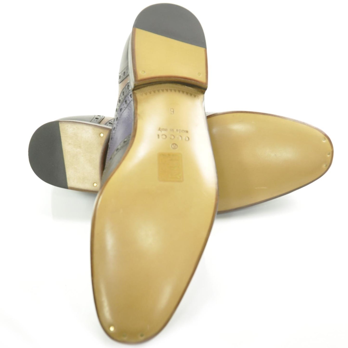 This is an authentic pair of GUCCI Mens Lace Up Oxfords 9 in Tricolor- NEW. These classic oxford style men’s shoes are beautifully crafted in three tones of leather. These are lace up with a sturdy leather base with a truly distinctive look, from Gucci! Gucci shoes typically run 2-2/12 sizes higher than stated. Size printed on shoe is 6(actual more like 9-9.5 narrow).Follow this item for alerts. Gucci is a registered trademark of Gucci. FASHIONPHILE is not affiliated with Gucci.