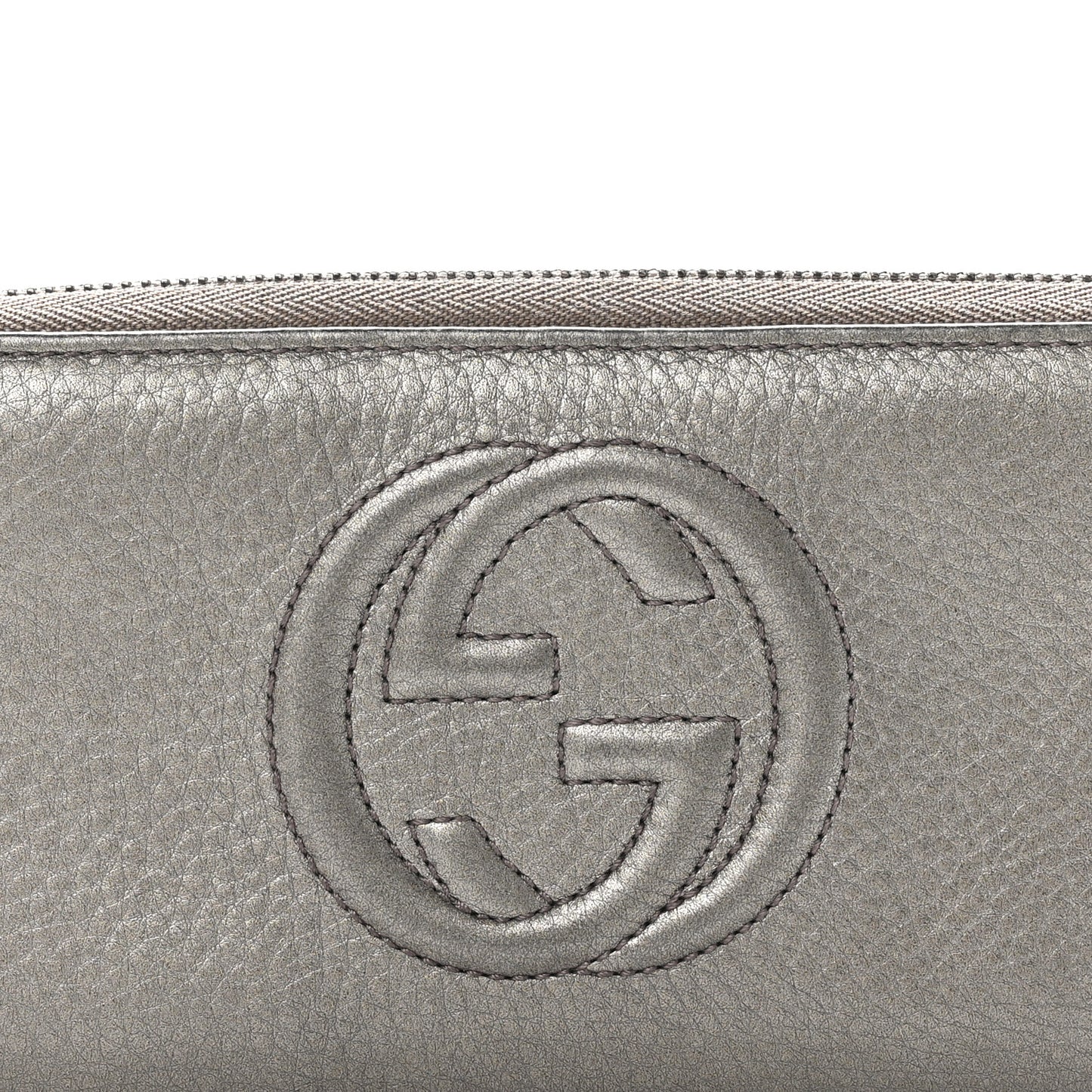 Gucci/ Accessories/ Wallets /Gucci Metallic Pebbled Calfskin Soho Zip Around Wallet Sasso