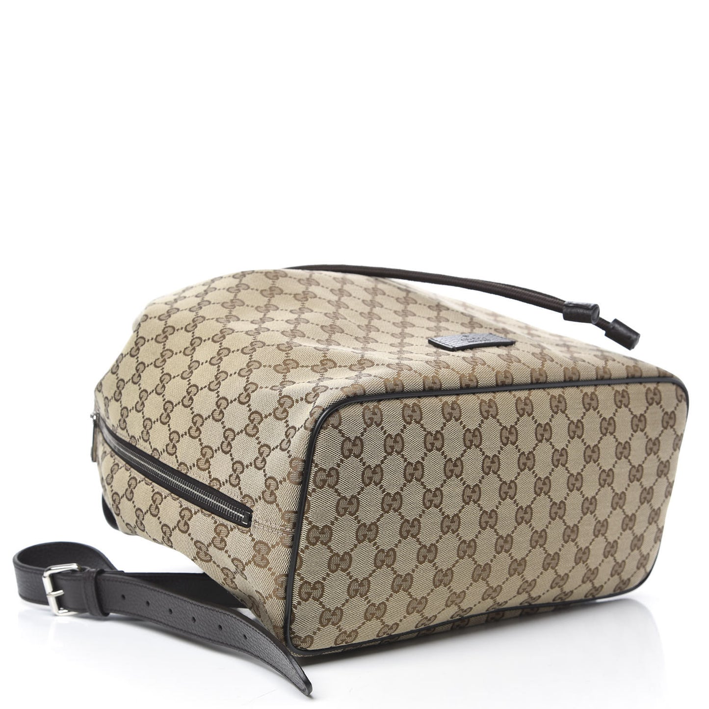 This is an authentic GUCCI Monogram Drawstring Backpack in Dark Brown. This stylish backpack is crafted of Gucci GG monogram canvas. The bag features a dark brown leather trim, a drawstring top, side zipper and dark brown leather shoulder straps. The top opens to a dark brown fabric interior with patch pockets.Follow this item for alerts. Gucci is a registered trademark of Gucci. FASHIONPHILE is not affiliated with Gucci.