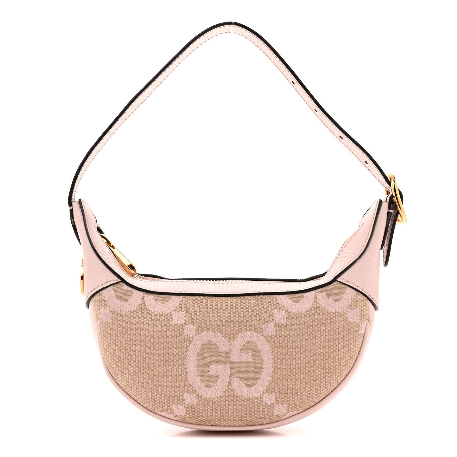 Monogram Jumbo GG Textured Dollar Calfskin Mini Ophidia Half Moon Hobo Beige Perfect Pink