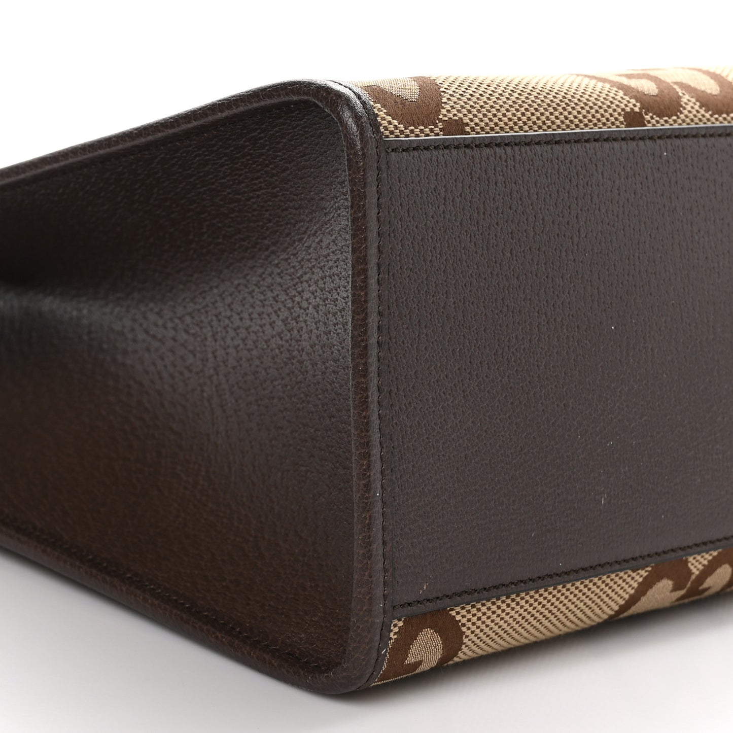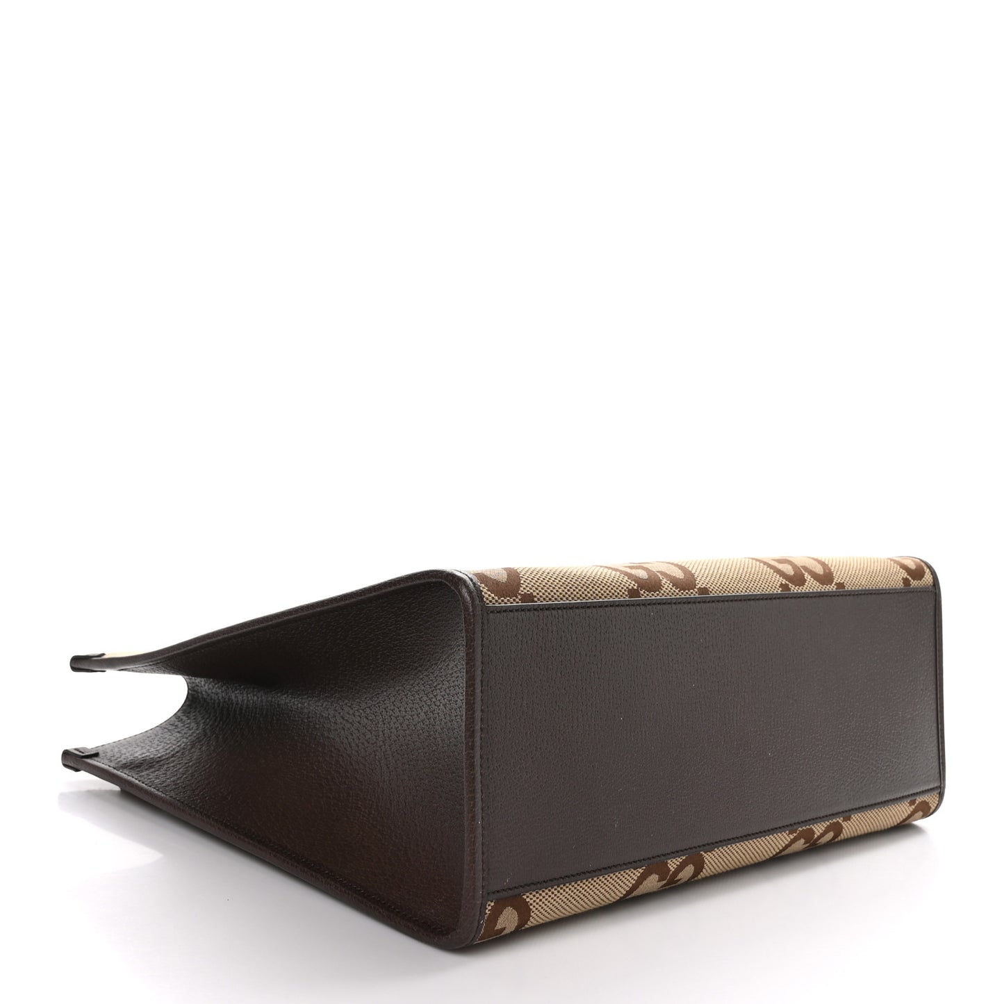 This is an authentic GUCCI Monogram Jumbo GG Textured Dollar Calfskin Web Tote Bag in Camel, Ebony, and New Acero. This shoulder bag is crafted of oversized monogram fabric in light brown. The bag has dark brown leather trim with sturdy top handles with matching trim. This handbag opens with a hook closure to a beige fabric interior with a zipper pocket.Follow this item for alerts. Gucci is a registered trademark of Gucci. FASHIONPHILE is not affiliated with Gucci.
