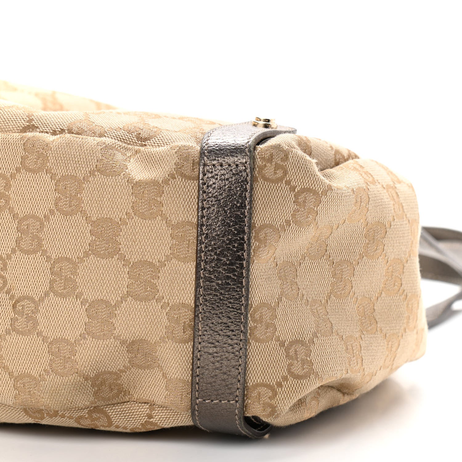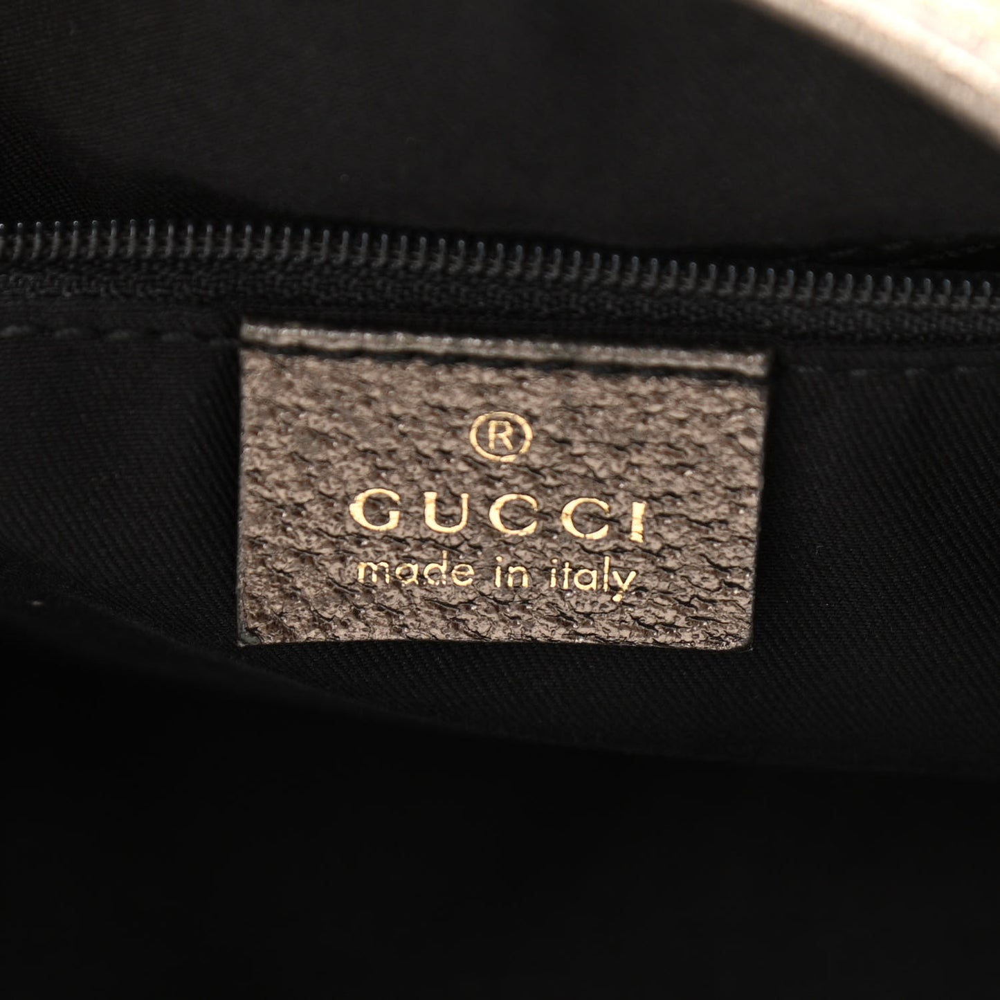 This is an authentic GUCCI Monogram Medium Abbey Shoulder Bag in Pewter. This elegant shoulder bag is finely crafted of beige Gucci GG monogram canvas. The bag features metallic dark gray shoulder straps and trim with polished brass hardware. The top of the bag is open to a black fabric interior with zipper and patch pockets.Follow this item for alerts. Gucci is a registered trademark of Gucci. FASHIONPHILE is not affiliated with Gucci.