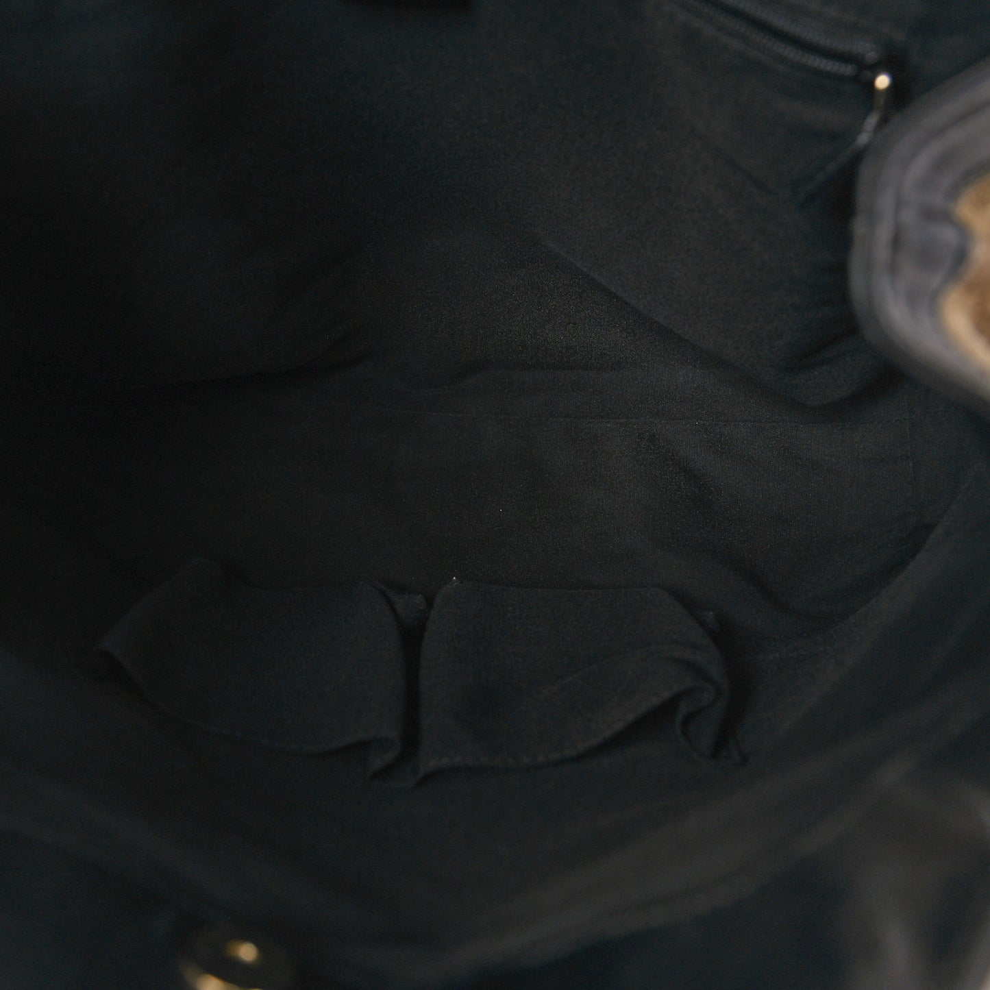 This is an authentic GUCCI Monogram Shoulder Bag in Black. This distinctively structured soft tote is crafted of brown on beige Gucci GG monogram canvas. It features black cowhide leather trim including shoulder straps and piping with polished brass hardware. The top opens with a button snap to a dark brown fabric interior with zipper and patch pockets.Follow this item for alerts. Gucci is a registered trademark of Gucci. FASHIONPHILE is not affiliated with Gucci.