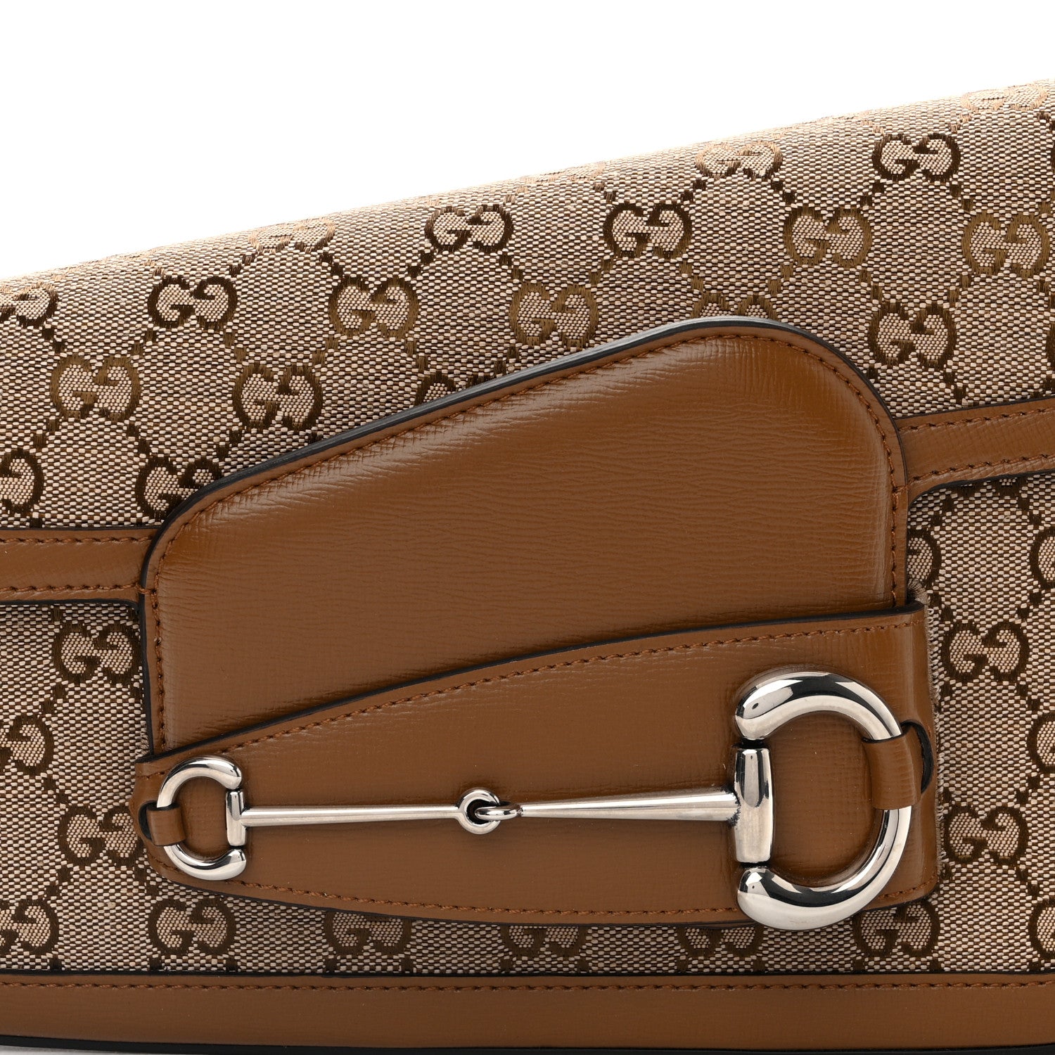 Gucci/ Bags/ Shoulder Bags /Gucci Monogram Small Horsebit 1955 Asymmetric Shoulder Bag Beige Brown Sugar