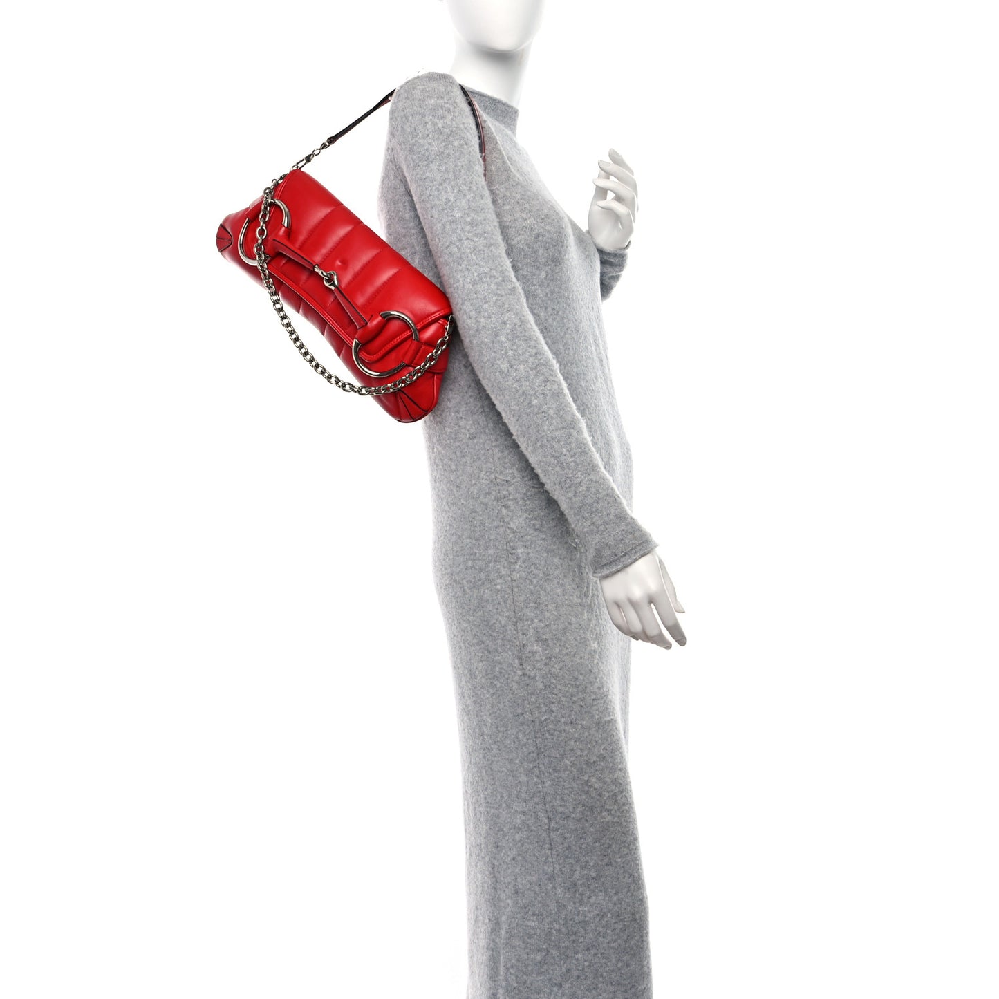 Gucci/ Bags/ Shoulder Bags /Gucci Nappa Vertical Matelasse Medium Maxi Horsebit Chain Shoulder Bag Beret Red