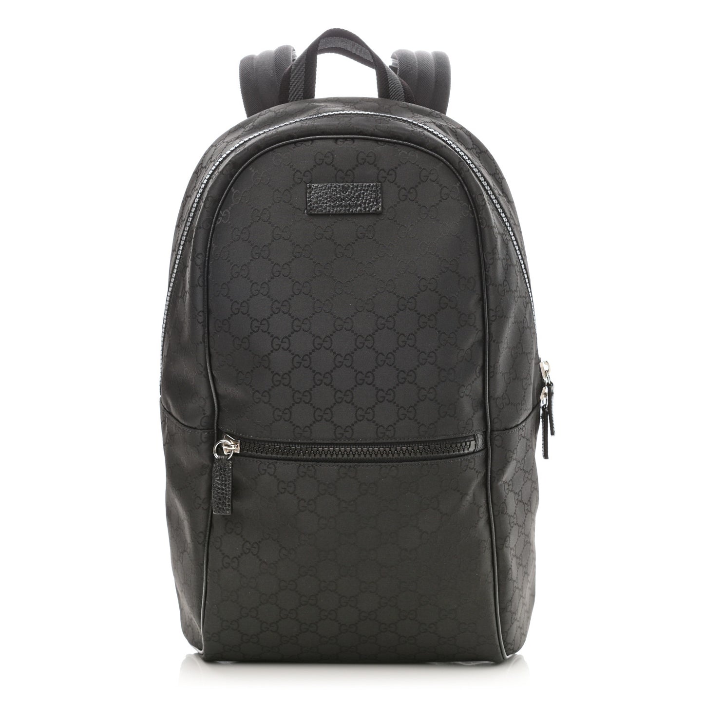 This is an authentic GUCCI Nylon Monogram Slim Backpack in Black. This stylish backpack is crafted of Gucci GG monogram fabric in black. The bag features a front zipper pocket, a leather top handle, adjustable nylon shoulder straps, and silver hardware.. The main zipper opens to a spacious fabric interior with pockets.Follow this item for alerts. Gucci is a registered trademark of Gucci. FASHIONPHILE is not affiliated with Gucci.