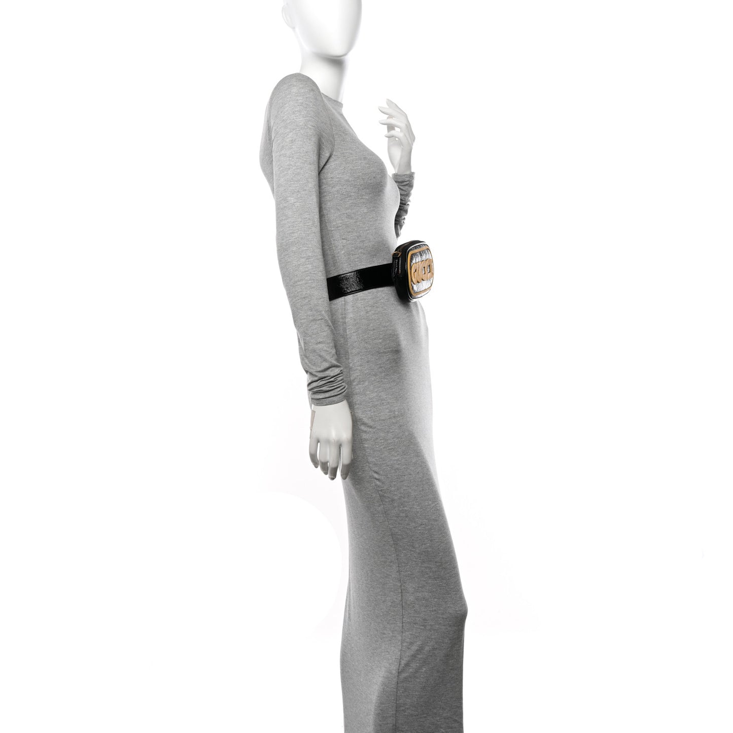 This is an authentic GUCCI Patent Rubber Logo Belt Bag 75 30 in Black. This chic belt bag is crafted of textured patent leather in black, with a prominent yellow rubber Gucci logo on the front. The bag features an adjustable patent leather belt with an aged silver buckle. The aged brass top zipper opens to a red floral print fabric interior with leather card slots.Follow this item for alerts. Gucci is a registered trademark of Gucci. FASHIONPHILE is not affiliated with Gucci.